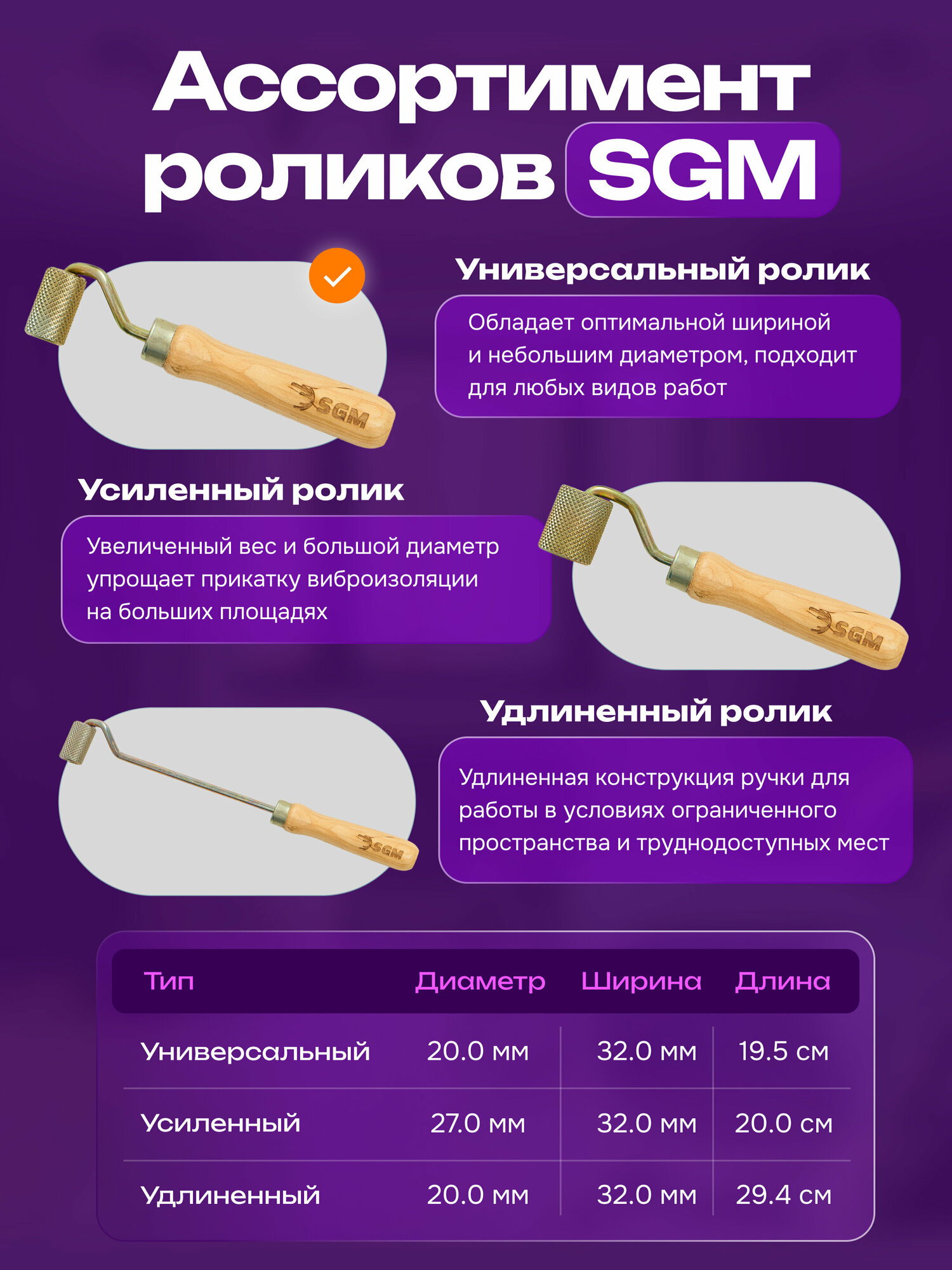 Валик прикаточный универсальный SGM / ролик для шумоизоляции автомобиля интересное: