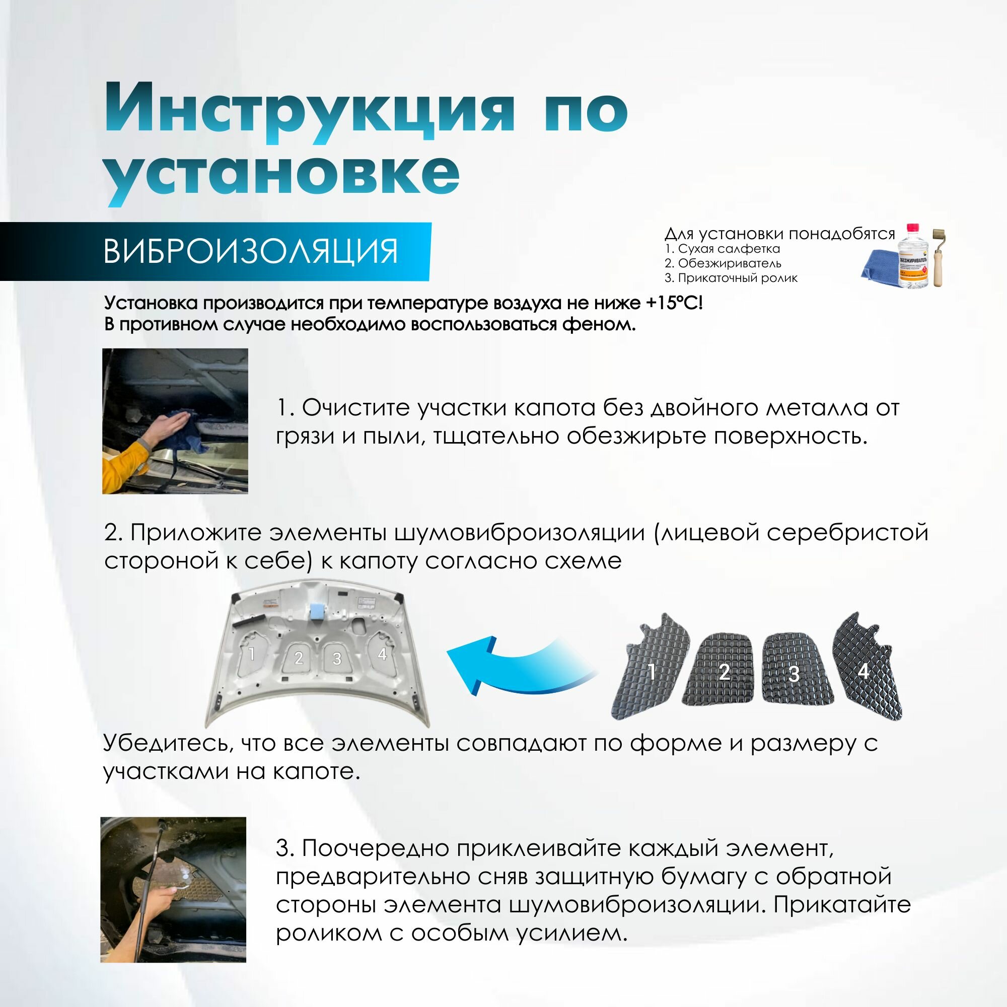 Комплект шумо и теплоизоляции капота ВАЗ 2114 2115 2113 бутилкаучуковая основа с фольгой 2 мм вспененный каучук 10 мм