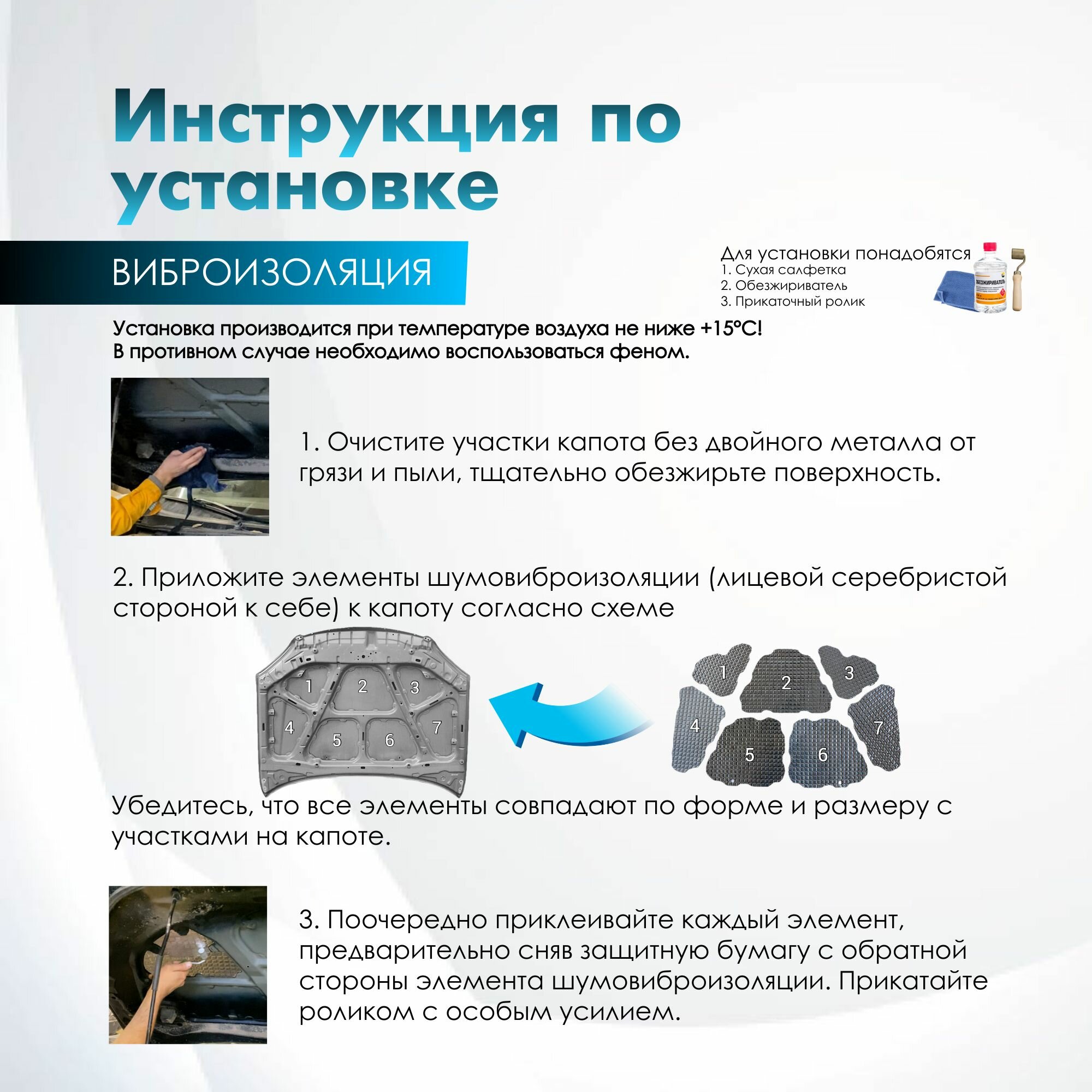 Комплект шумо и теплоизоляции капота Skoda Octavia A7 3 бутилкаучуковая основа с фольгой 2 мм вспененный каучук 10 мм