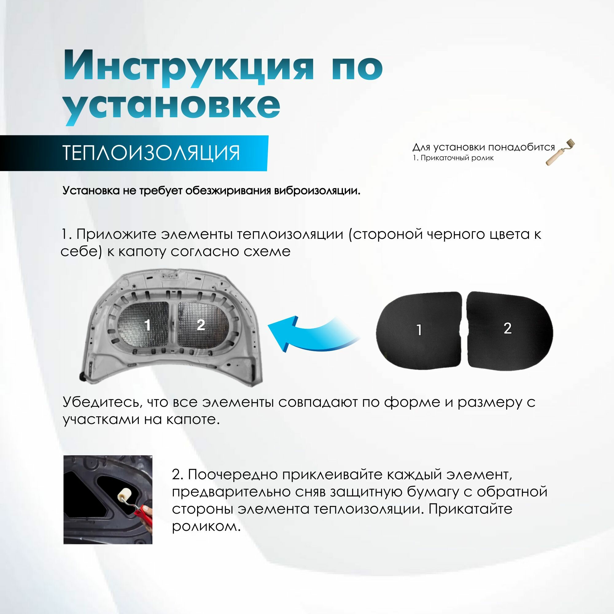 Комплект шумо и теплоизоляции капота Hyundai Creta I бутилкаучуковая основа с фольгой 2 мм вспененный каучук 10 мм