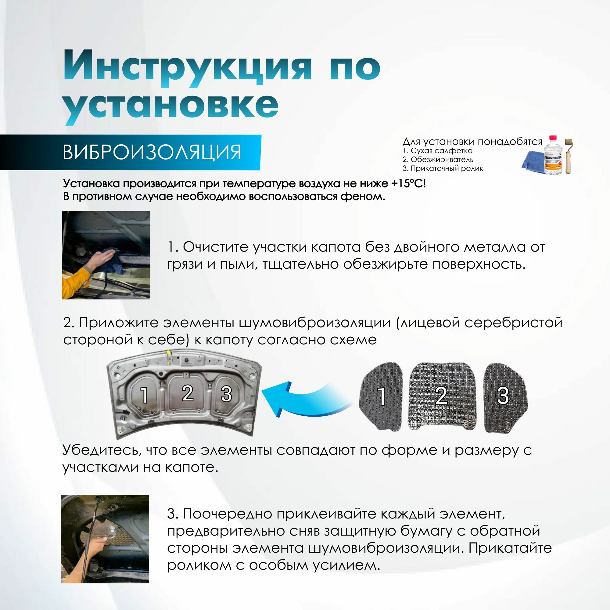 Комплект шумо и теплоизоляции капота Chery Tiggo 7 Pro Max T1E Лада X-cross 5 бутилкаучуковая основа с фольгой 2 мм вспененный каучук 10 мм