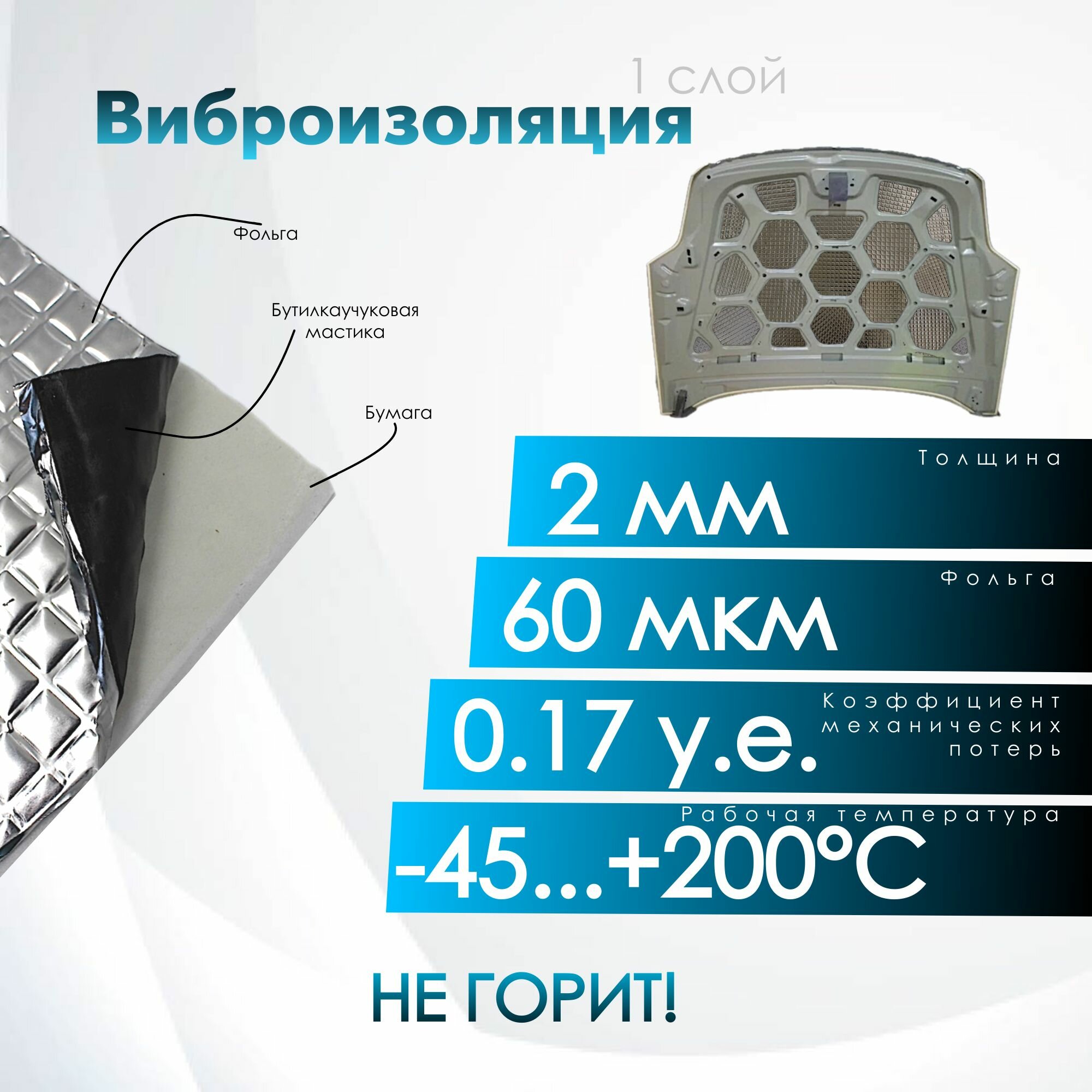 Комплект шумо и теплоизоляции капота ВАЗ 2123 Chevrolet Niva бутилкаучуковая основа с фольгой 2 мм вспененный каучук