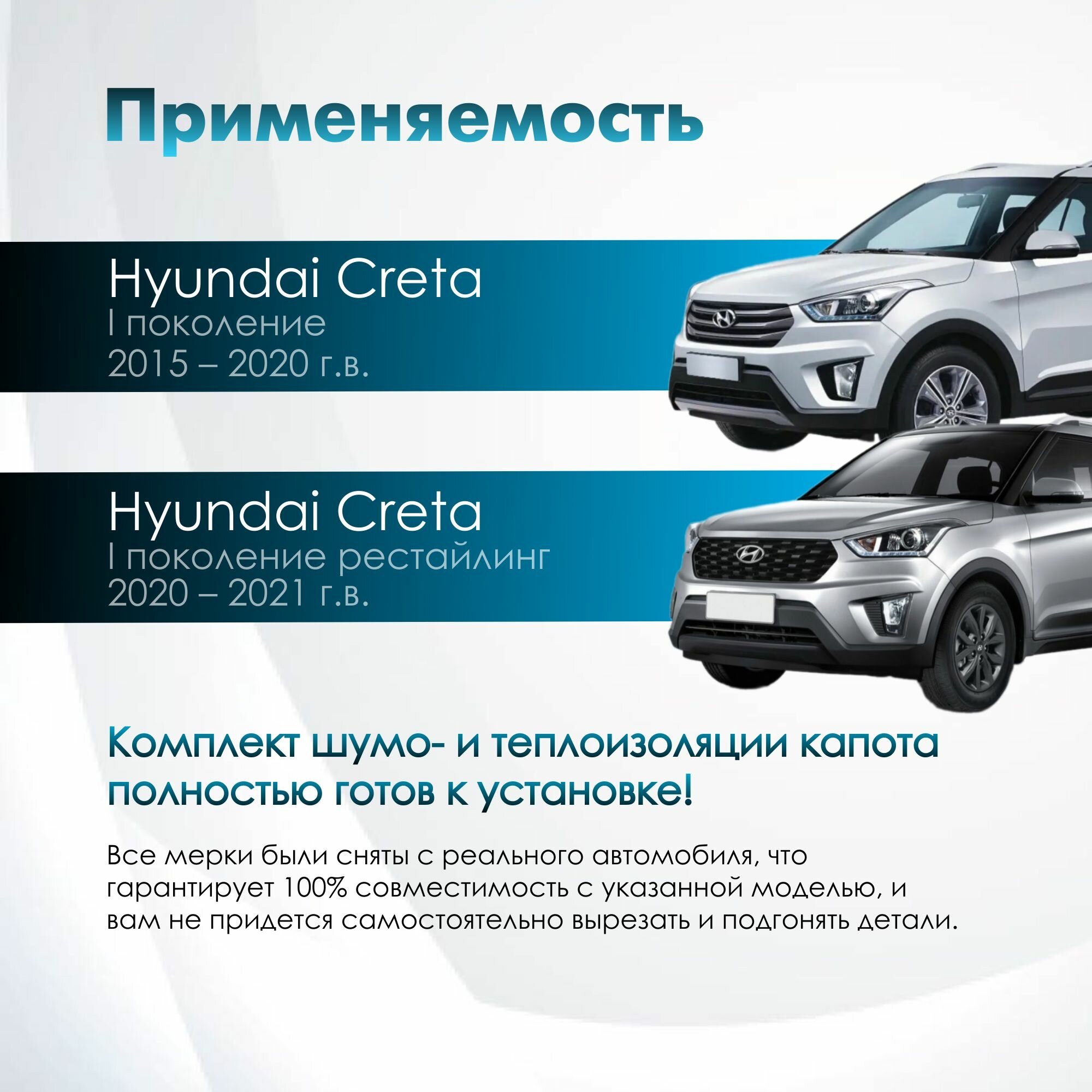 СохранитьКомплект шумо и теплоизоляции капота Hyundai Creta I бутилкаучуковая основа с фольгой 2 мм вспененный каучук 10 мм интересное: