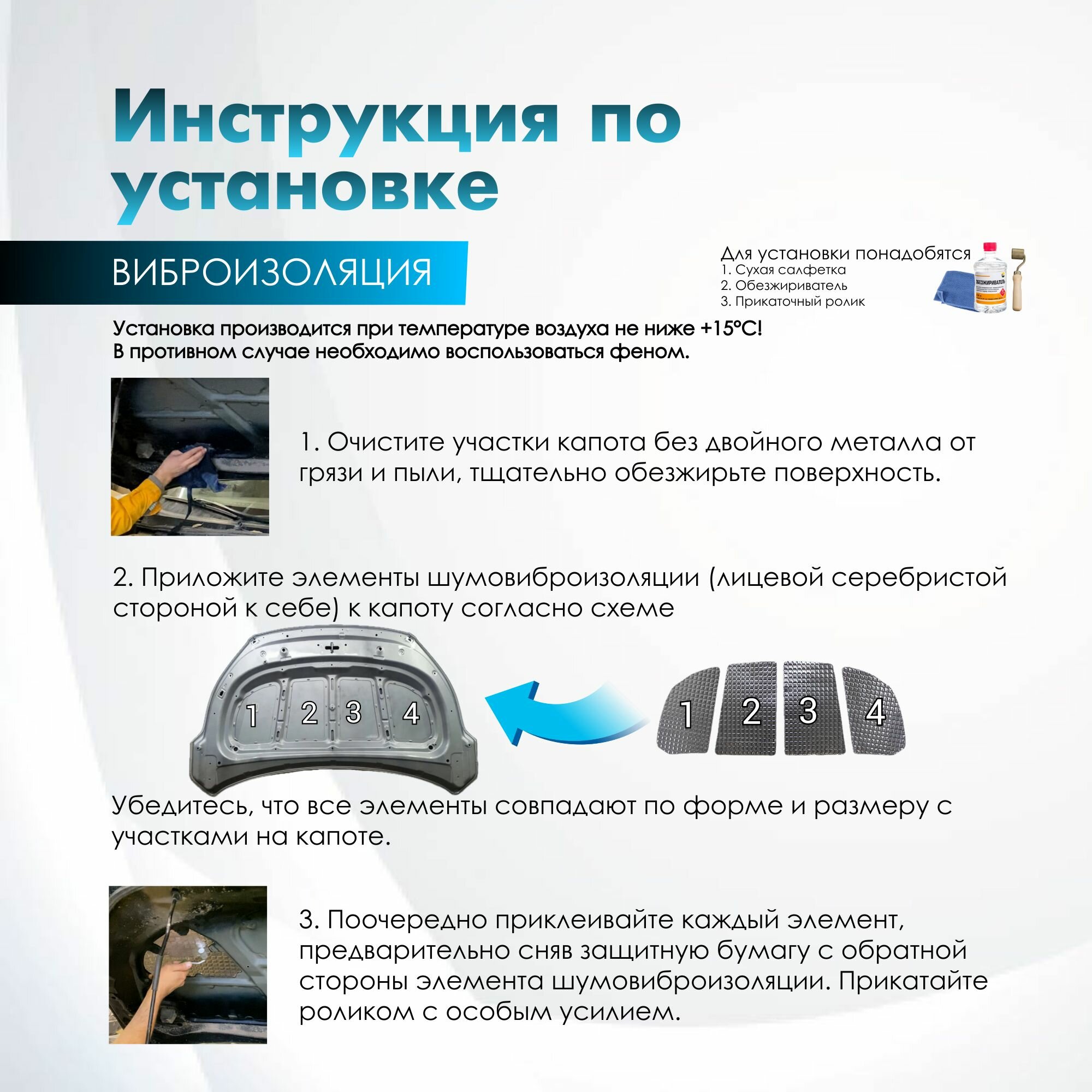 Комплект шумо и теплоизоляции капота Chery Tiggo 7 Pro Max T1E Лада X-cross 5 бутилкаучуковая основа с фольгой 2 мм вспененный каучук 10 мм