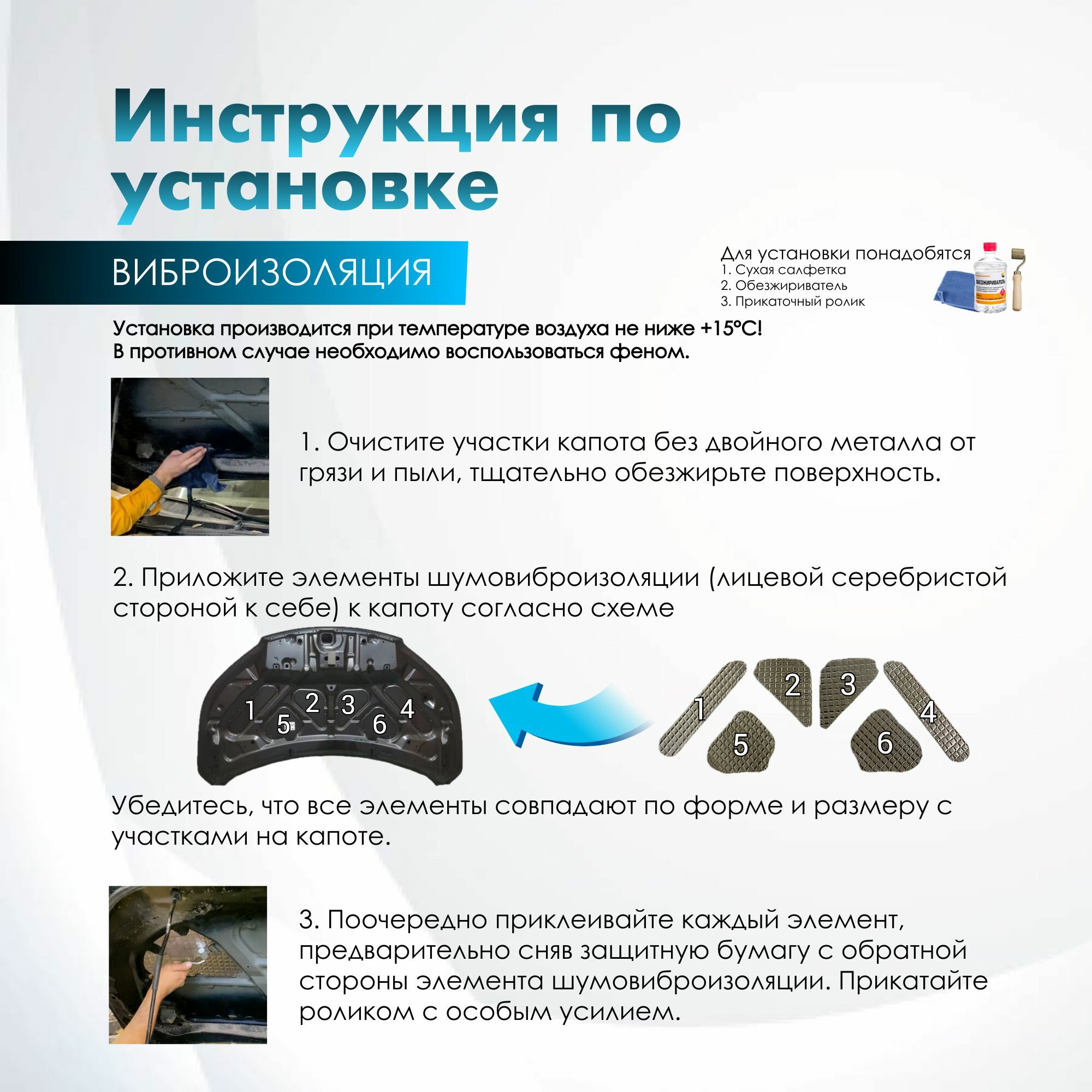 Комплект шумо и теплоизоляции капота Skoda Octavia A7 3 бутилкаучуковая основа с фольгой 2 мм вспененный каучук 10 мм