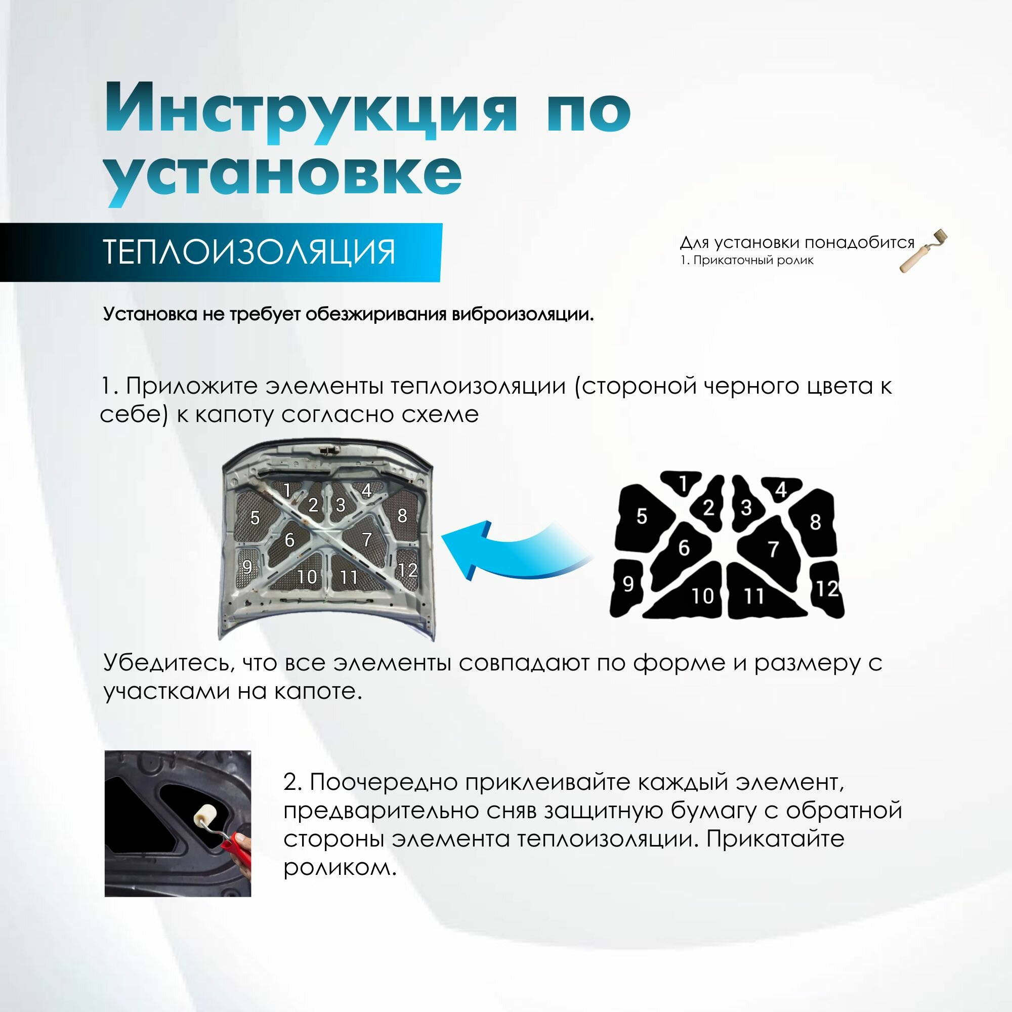 Комплект шумо и теплоизоляции капота Chery Tiggo 7 Pro Max T1E Лада X-cross 5 бутилкаучуковая основа с фольгой 2 мм вспененный каучук 10 мм