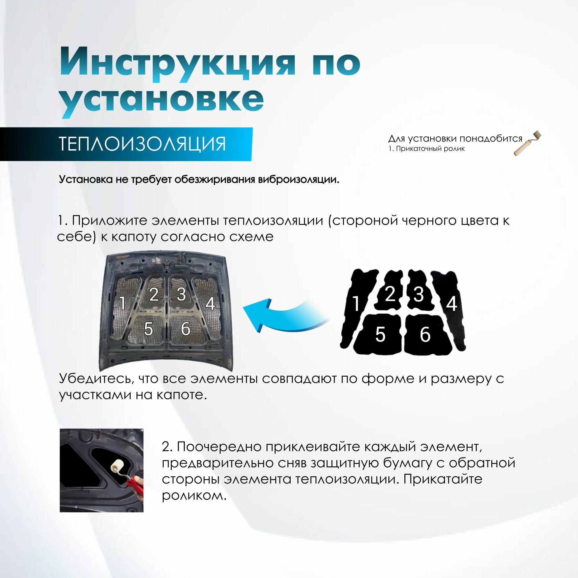 Комплект шумо и теплоизоляции капота Лада Ларгус Renault Logan 1 бутилкаучуковая основа с фольгой 2 мм вспененный каучук