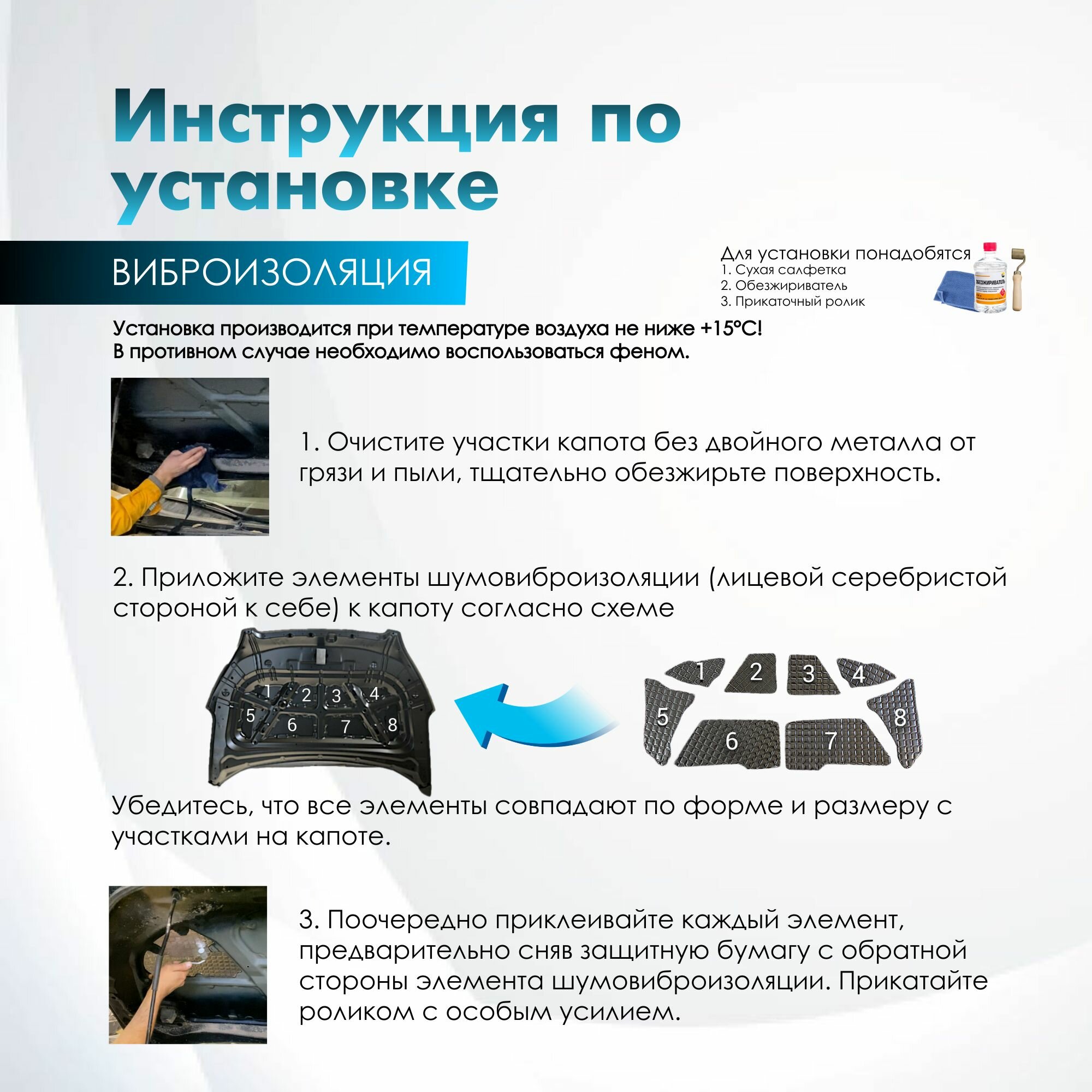 Комплект шумо и теплоизоляции капота Chery Tiggo 7 Pro Max T1E Лада X-cross 5 бутилкаучуковая основа с фольгой 2 мм вспененный каучук 10 мм