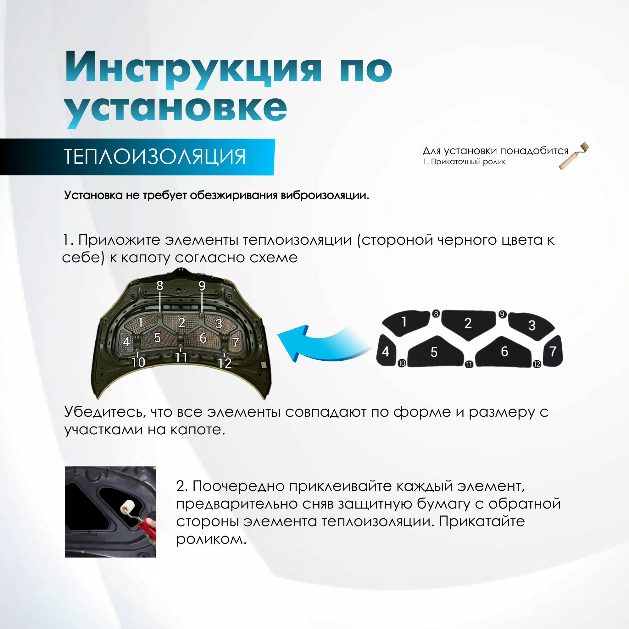 Комплект шумо и теплоизоляции капота ВАЗ 2114 2115 2113 бутилкаучуковая основа с фольгой 2 мм вспененный каучук 10 мм