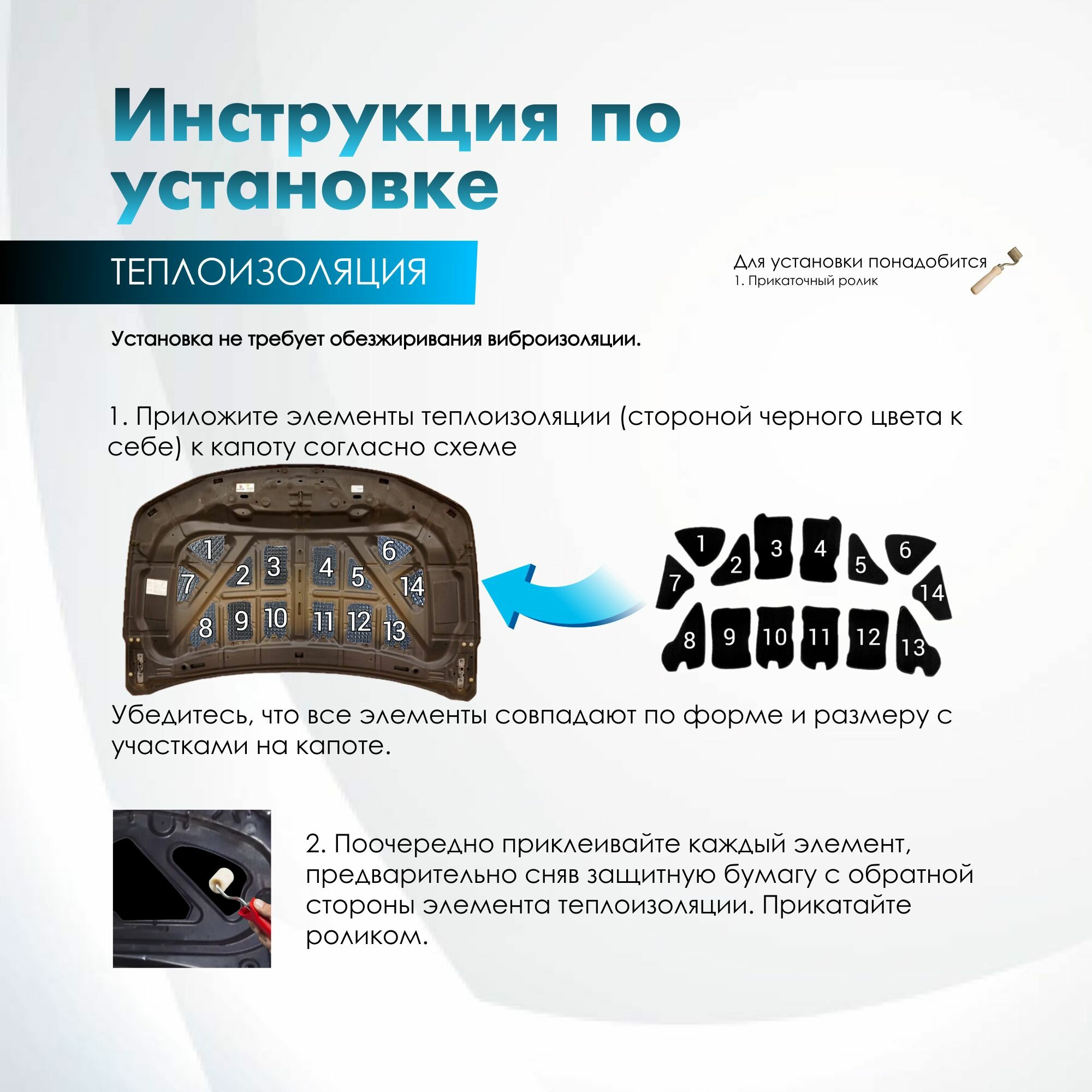 Комплект шумо и теплоизоляции капота Chery Tiggo 7 Pro Max T1E Лада X-cross 5 бутилкаучуковая основа с фольгой 2 мм вспененный каучук 10 мм
