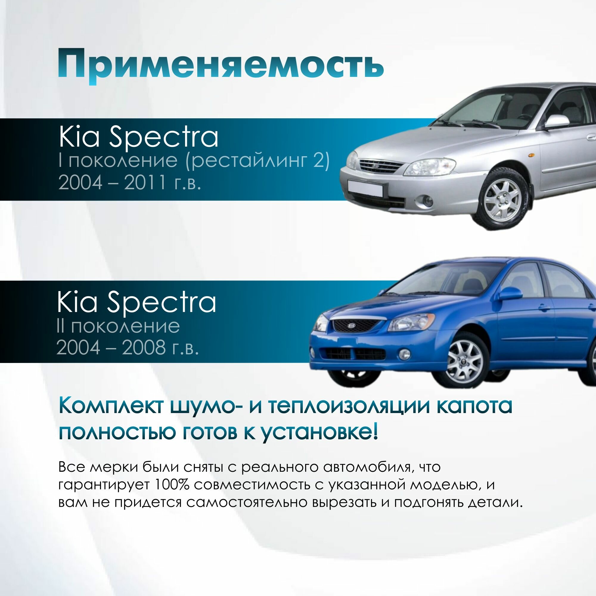 Ниже Вы можете прочитать отзывы на Комплект шумо и теплоизоляции капота KIA Spectra 1 и 2 бутилкаучуковая основа с фольгой 2 мм вспененный каучук 10 мм, ознакомится с подробными характеристиками, посмотреть интересные обзоры и фотографии на Комплект шумо и теплоизоляции капота KIA Spectra 1 и 2 бутилкаучуковая основа с фольгой 2 мм вспененный каучук 10 мм.