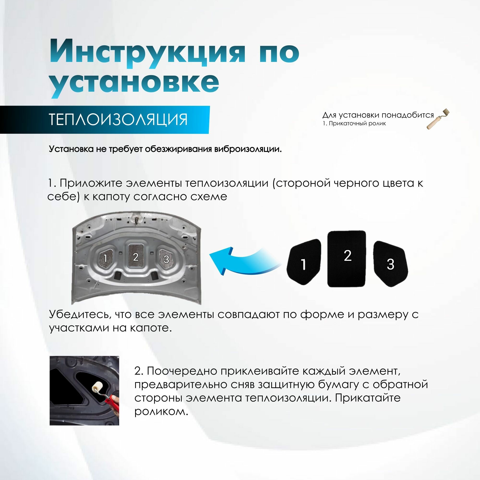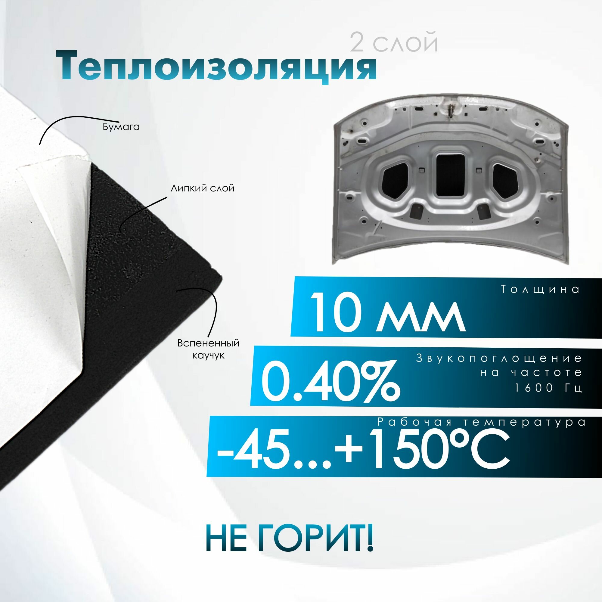 Комплект шумо и теплоизоляции капота Chery Tiggo 7 Pro Max T1E Лада X-cross 5 бутилкаучуковая основа с фольгой 2 мм вспененный каучук 10 мм