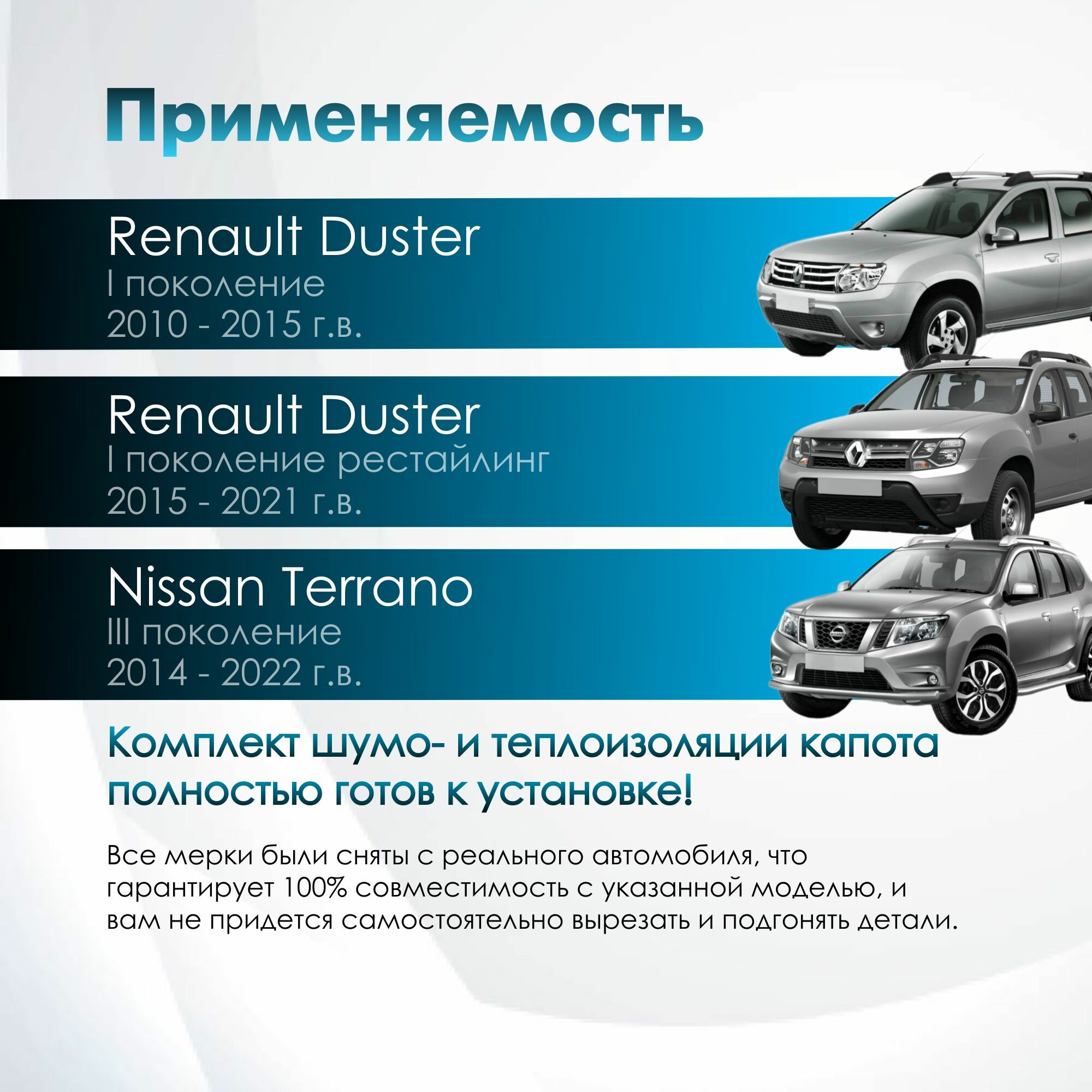 Купить Комплект шумо и теплоизоляции капота Renault Duster 1 Terrano 3 бутилкаучуковая основа с фольгой 2 мм вспененный каучук