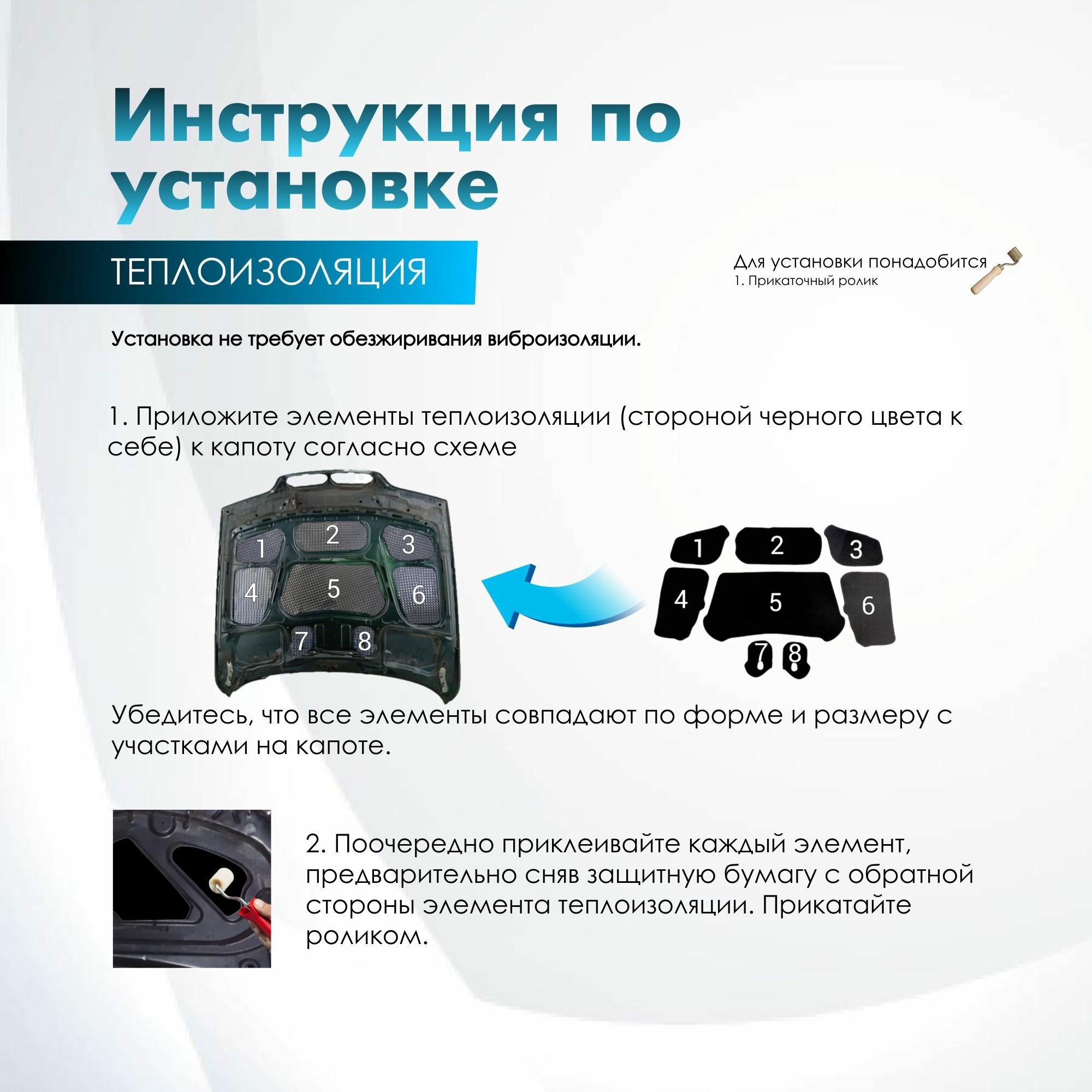 Комплект шумо и теплоизоляции капота ВАЗ 2114 2115 2113 бутилкаучуковая основа с фольгой 2 мм вспененный каучук 10 мм