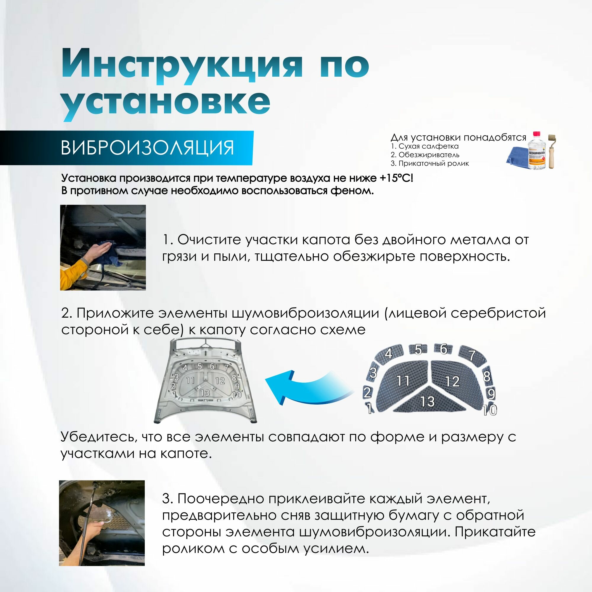 Комплект шумо и теплоизоляции капота Skoda Octavia A7 3 бутилкаучуковая основа с фольгой 2 мм вспененный каучук 10 мм