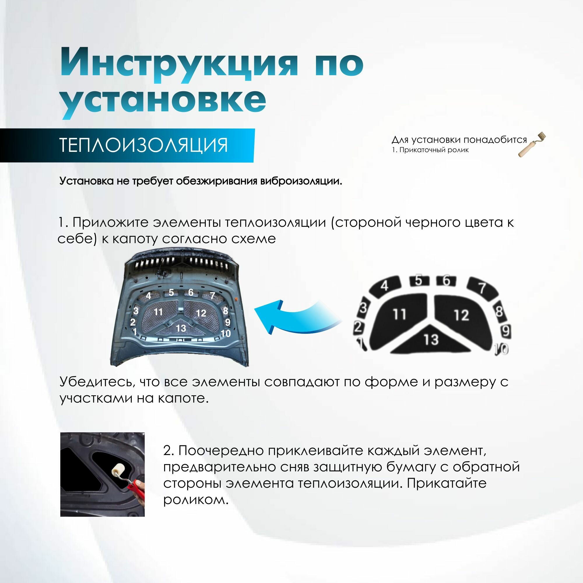 Комплект шумо и теплоизоляции капота ВАЗ 2114 2115 2113 бутилкаучуковая основа с фольгой 2 мм вспененный каучук 10 мм