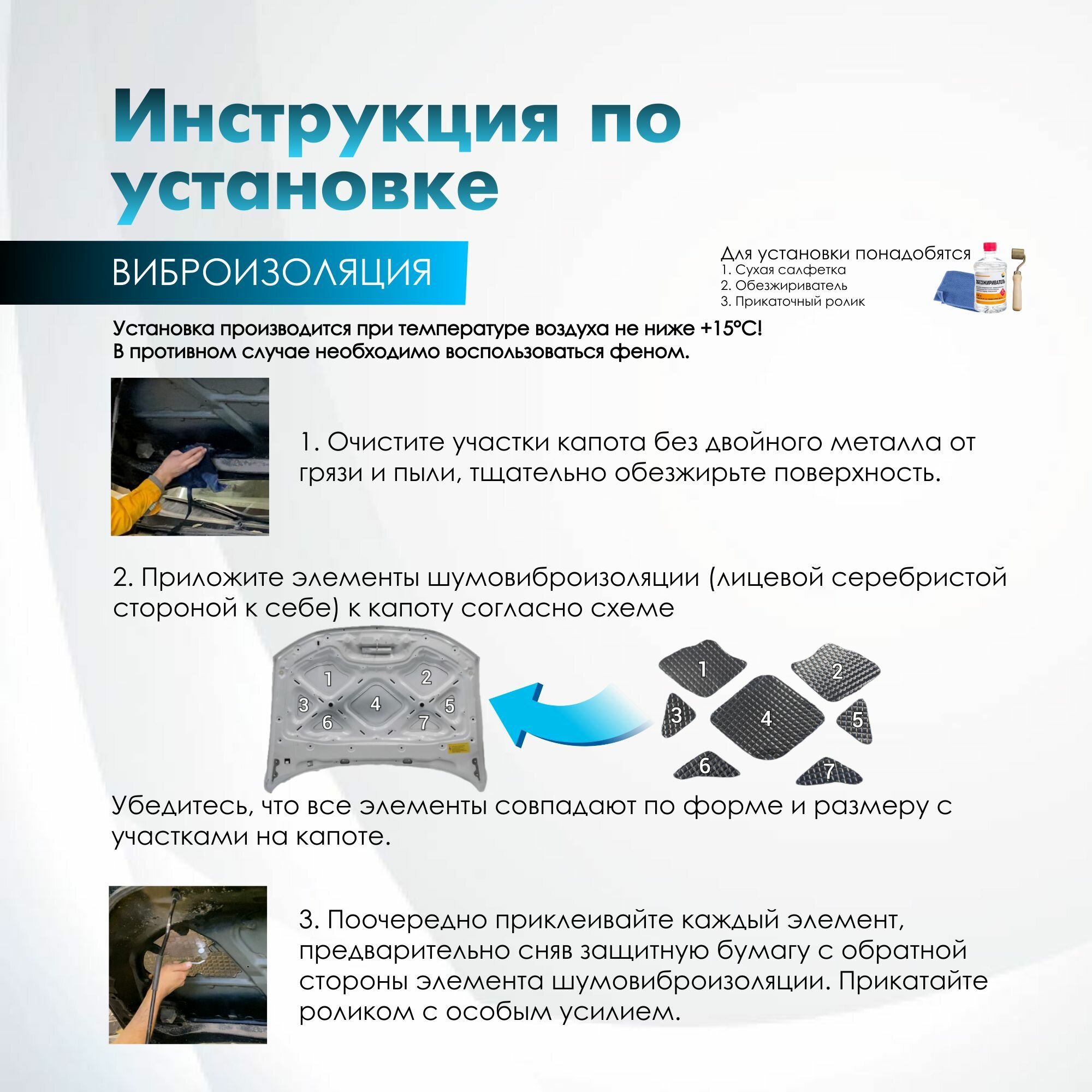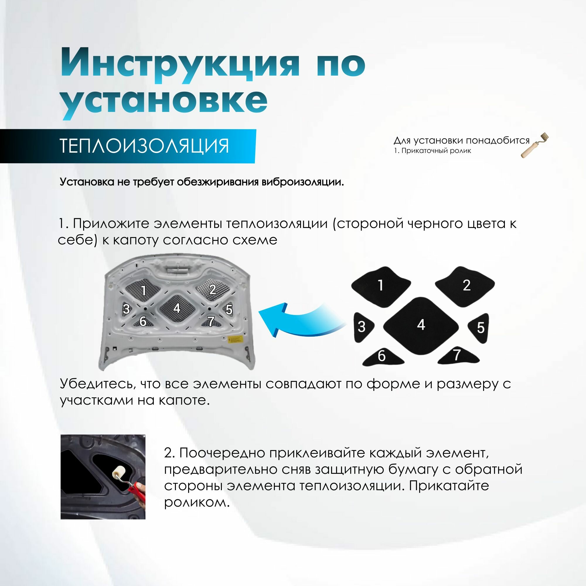 Комплект шумо и теплоизоляции капота Chery Tiggo 7 Pro Max T1E Лада X-cross 5 бутилкаучуковая основа с фольгой 2 мм вспененный каучук 10 мм