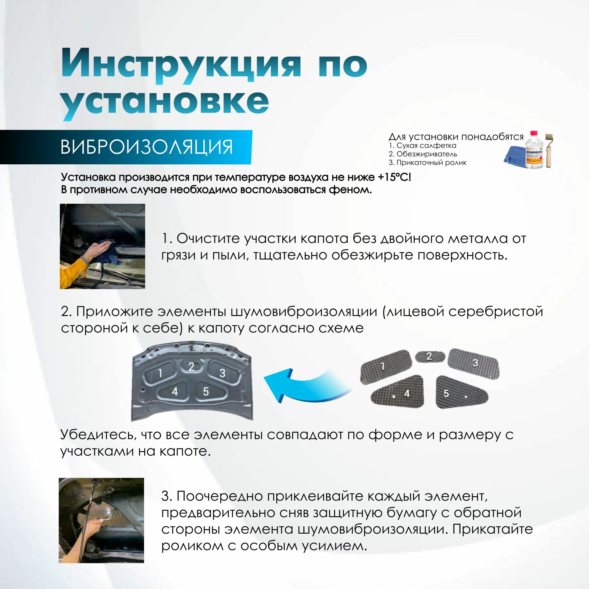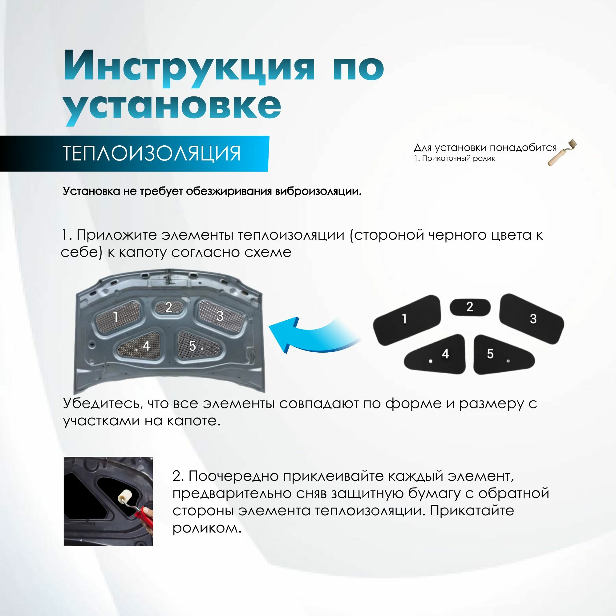 Комплект шумо и теплоизоляции капота Chery Tiggo 7 Pro Max T1E Лада X-cross 5 бутилкаучуковая основа с фольгой 2 мм вспененный каучук 10 мм