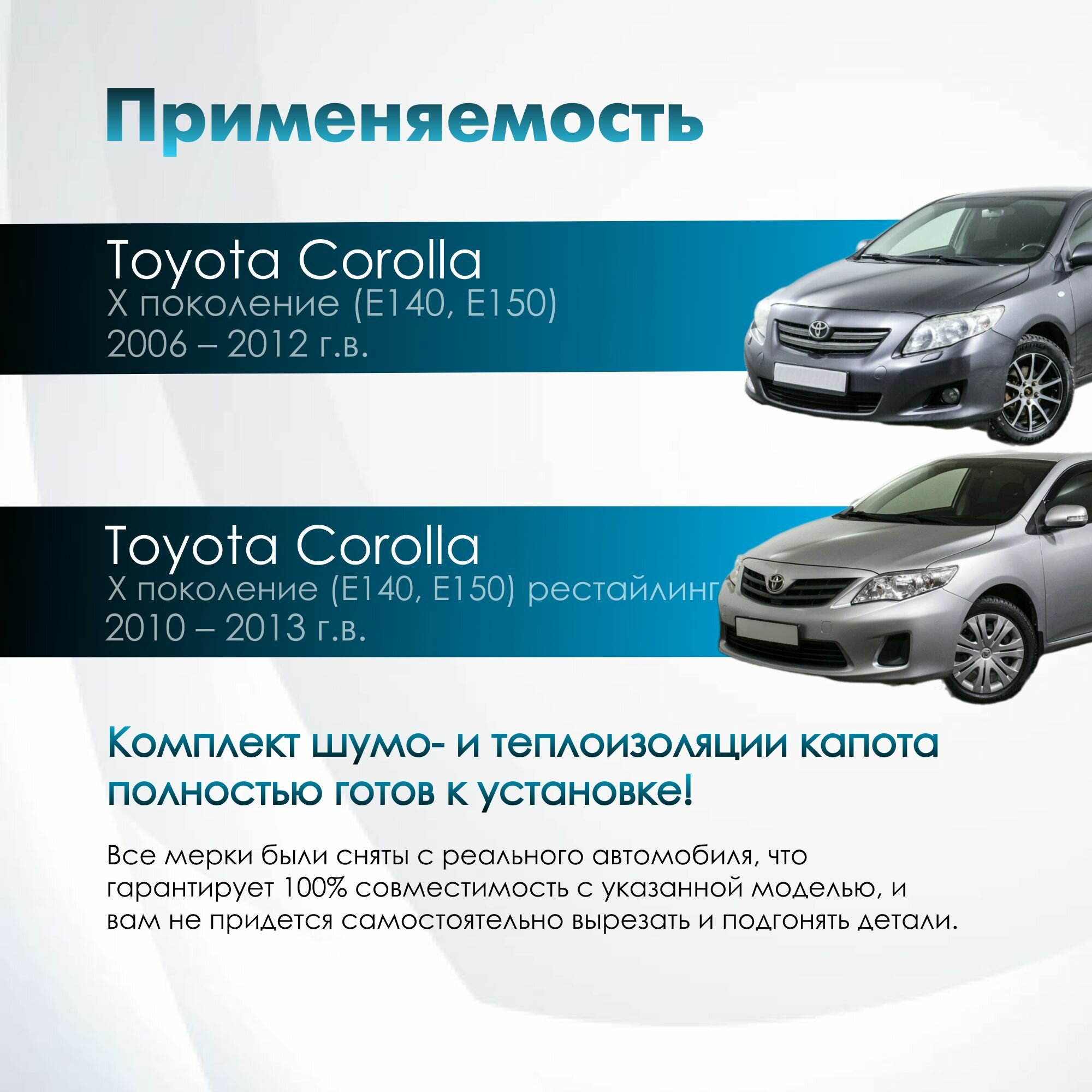 Ниже Вы можете прочитать отзывы на Комплект шумо и теплоизоляции капота Toyota Corolla X E140 E150 бутилкаучуковая основа с фольгой 2 мм вспененный каучук, ознакомится с подробными характеристиками, посмотреть интересные обзоры и фотографии на Комплект шумо и теплоизоляции капота Toyota Corolla X E140 E150 бутилкаучуковая основа с фольгой 2 мм вспененный каучук.