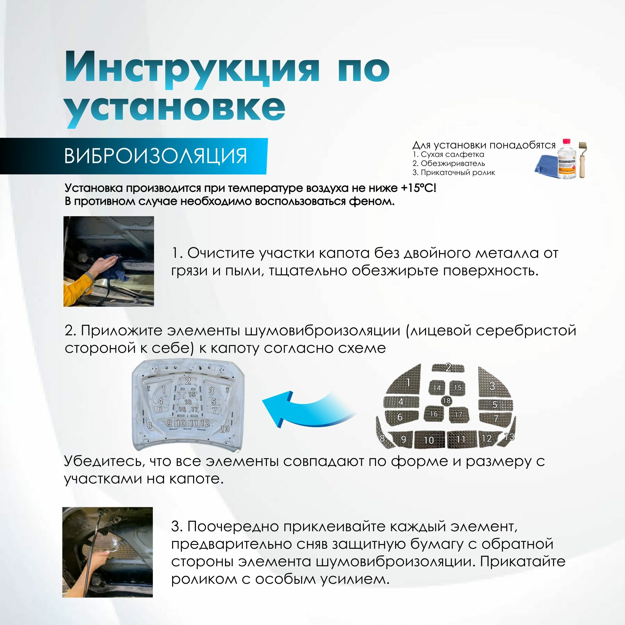 Комплект шумо и теплоизоляции капота Лада Гранта FL бутилкаучуковая основа с фольгой 2 мм вспененный каучук 10 мм
