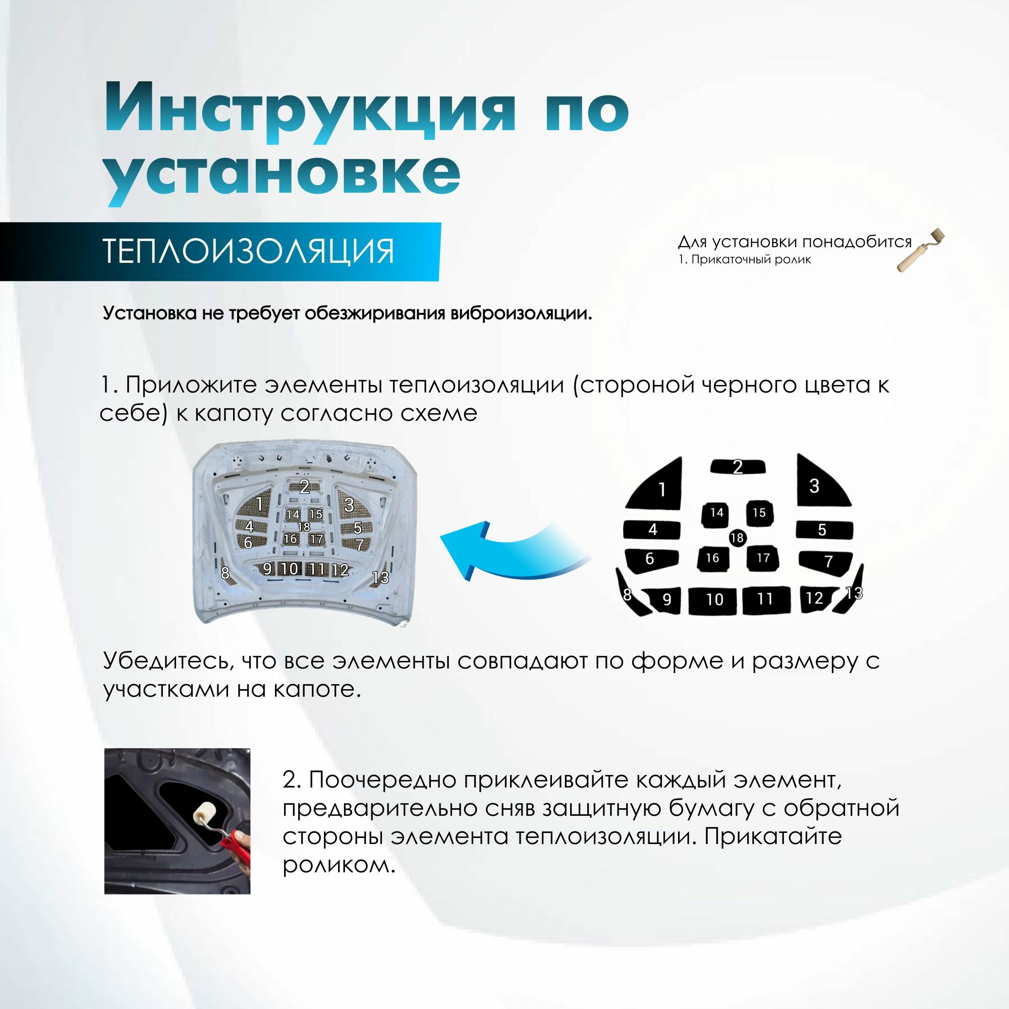 Комплект шумо и теплоизоляции капота Chery Tiggo 7 Pro Max T1E Лада X-cross 5 бутилкаучуковая основа с фольгой 2 мм вспененный каучук 10 мм