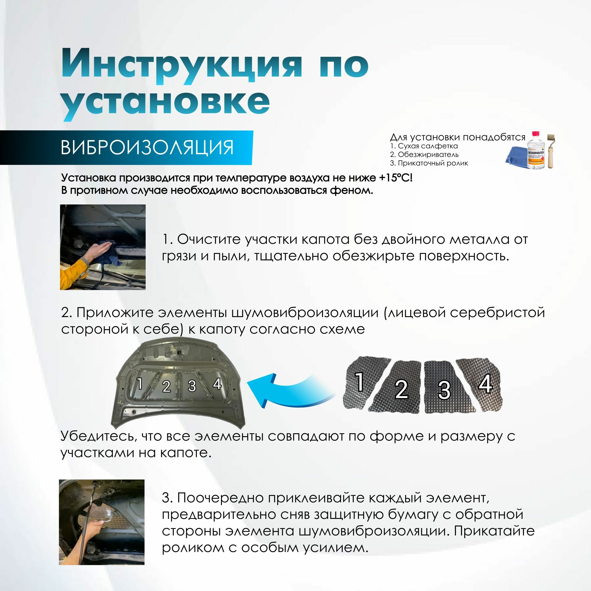 Комплект шумо и теплоизоляции капота Chery Tiggo 7 Pro Max T1E Лада X-cross 5 бутилкаучуковая основа с фольгой 2 мм вспененный каучук 10 мм