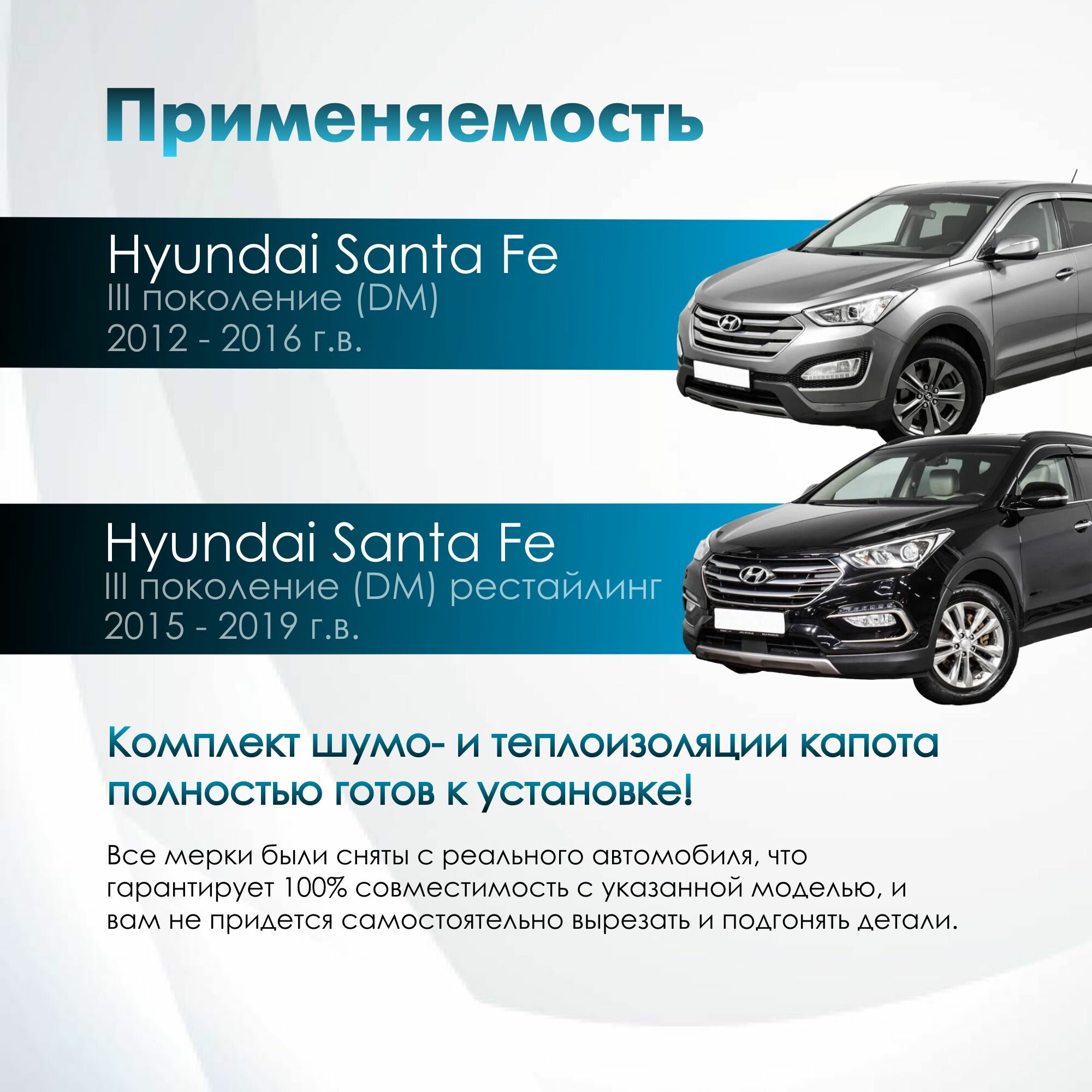 Ниже Вы можете прочитать отзывы на Комплект шумо и теплоизоляции капота Hyundai Santa Fe III DM 2012-2019 бутилкаучуковая основа с фольгой 2 мм вспененный каучук 10 мм, ознакомится с подробными характеристиками, посмотреть интересные обзоры и фотографии на Комплект шумо и теплоизоляции капота Hyundai Santa Fe III DM 2012-2019 бутилкаучуковая основа с фольгой 2 мм вспененный каучук 10 мм.