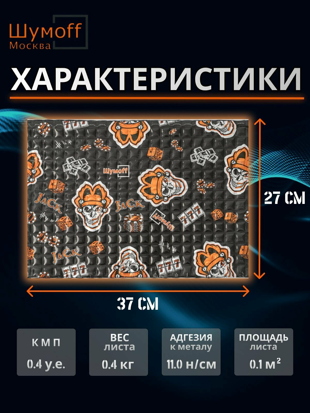 Виброизоляция Шумофф Black Jack 4 листа 37см х 27 см, вибродемпфер Шумофф Блэк Джек для автомобиля интересное: