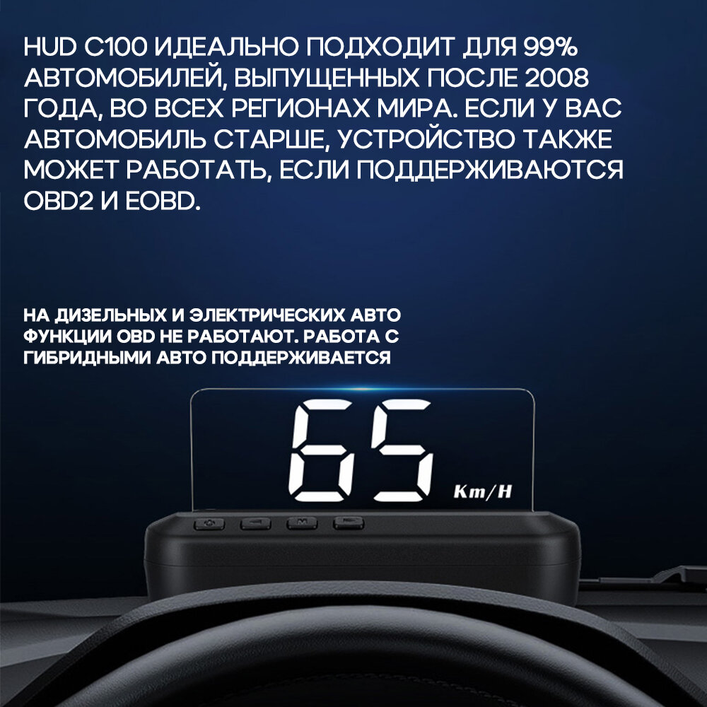 Купить Проекция на лобовое стекло / HUD OBD C100 / Проектор скорости для бензиновых авто
