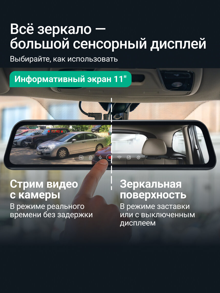 Видеорегистратор зеркало для автомобиля с радар-детектором Roadgid Blick Combo интересное:
