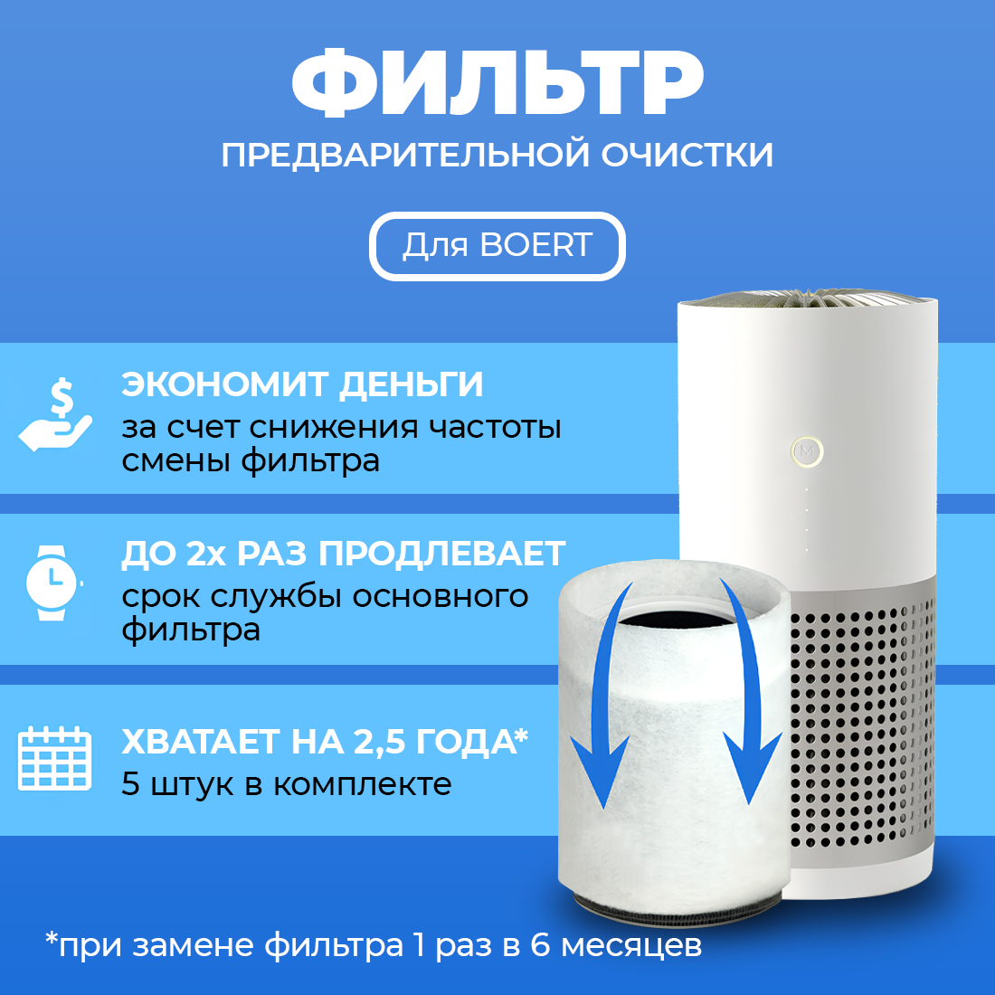 Фильтр для очистителя воздуха BOERT предварительной очистки. Префильтр. (5 шт) интересное: