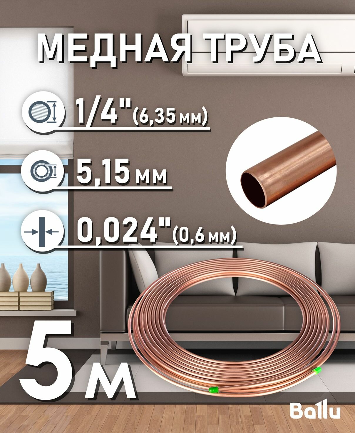 Труба медная 1/4" (6,35 мм) 4 метра Ballu Olympic