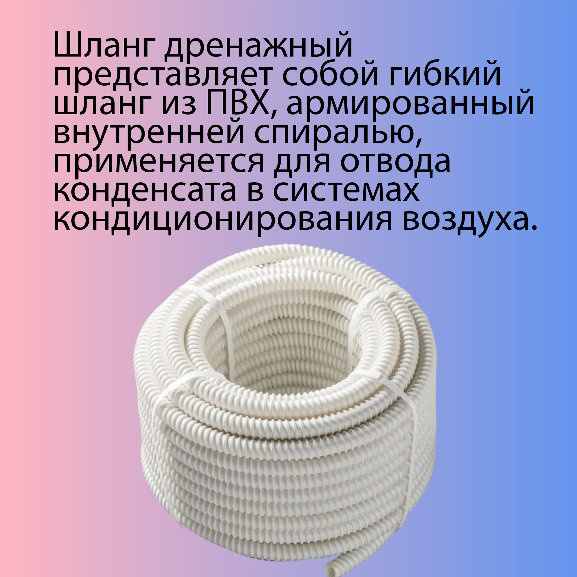 Шланг дренажный, для кондиционера, ПВХ, белый, армированный, 16 мм-10м