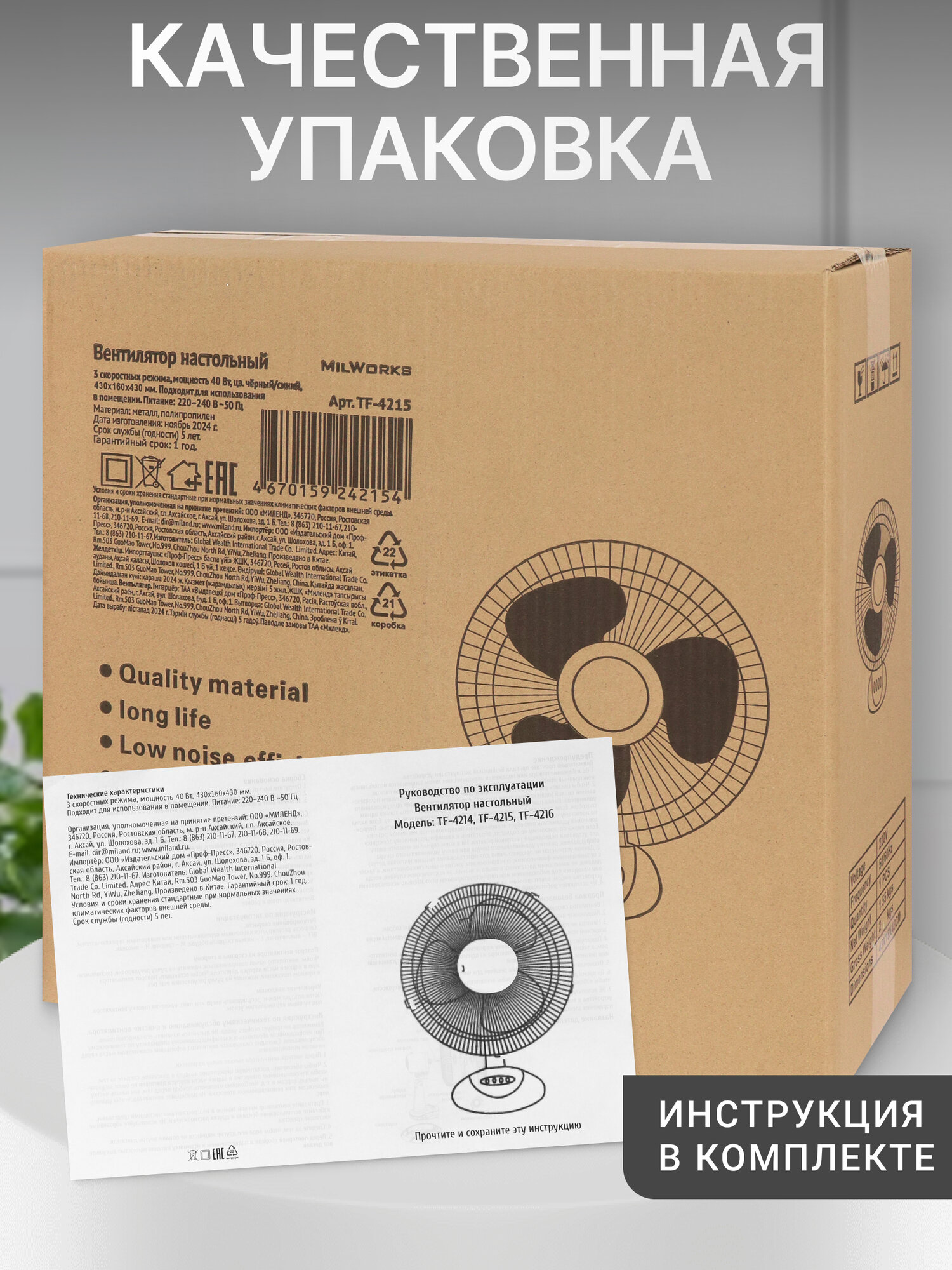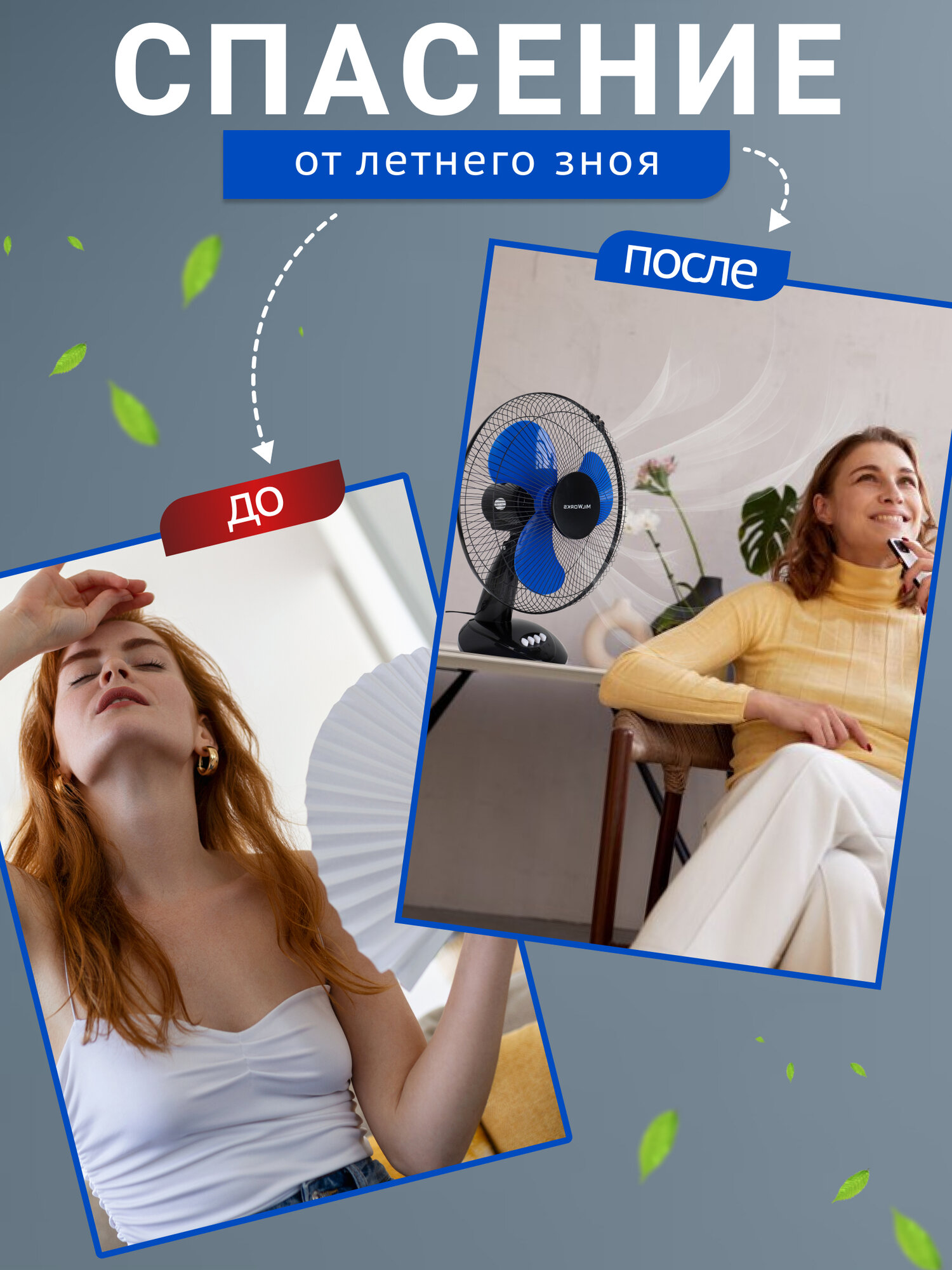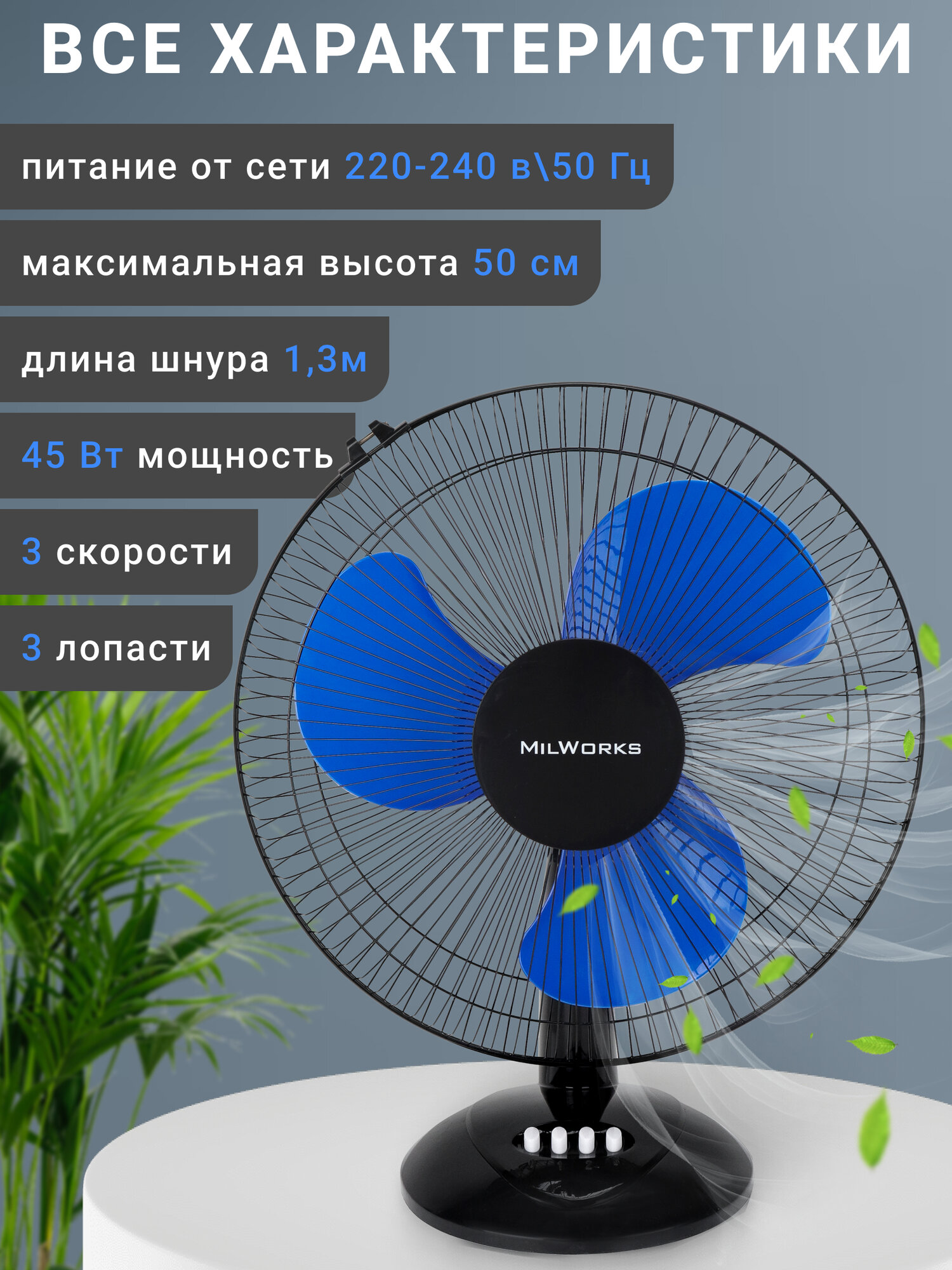 Вентилятор настольный механический, 3 скорости, 36х50х26 см, 45 Вт, синий интересное: