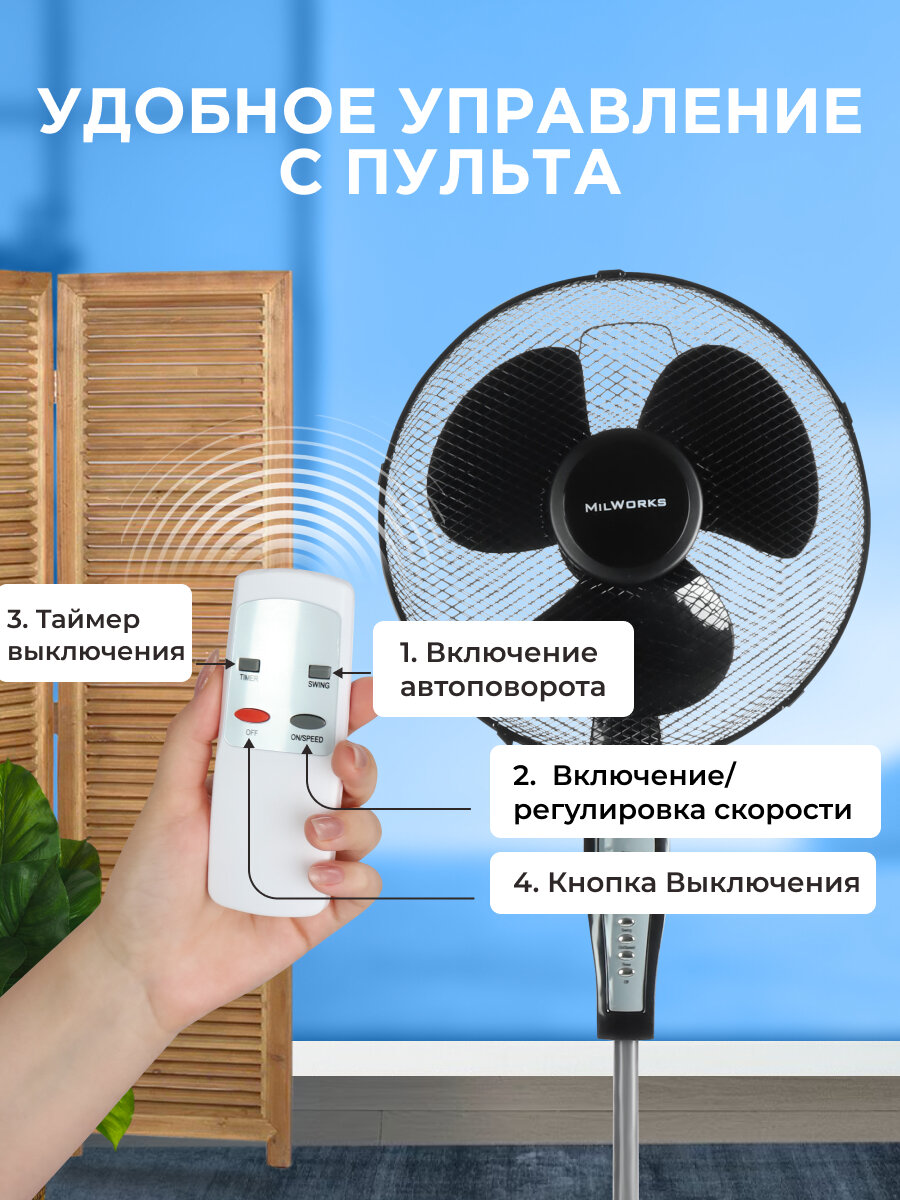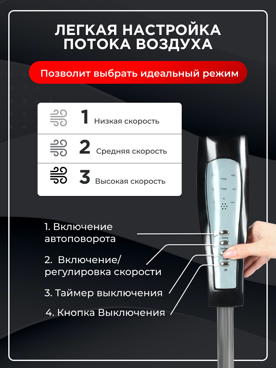Вентилятор напольный, 3 скоростных режима, пульт в комплекте, 120 см, черный интересное:
