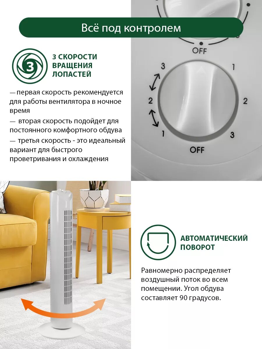 Напольный вентилятор колонного типа MARTA MT-FN2536 белый жемчуг интересное: