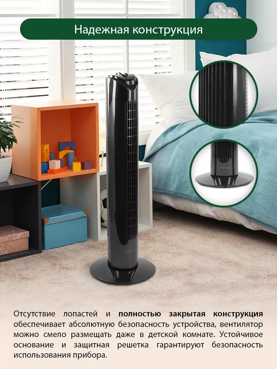 Напольный вентилятор колонного типа MARTA MT-FN2536 черный жемчуг интересное: