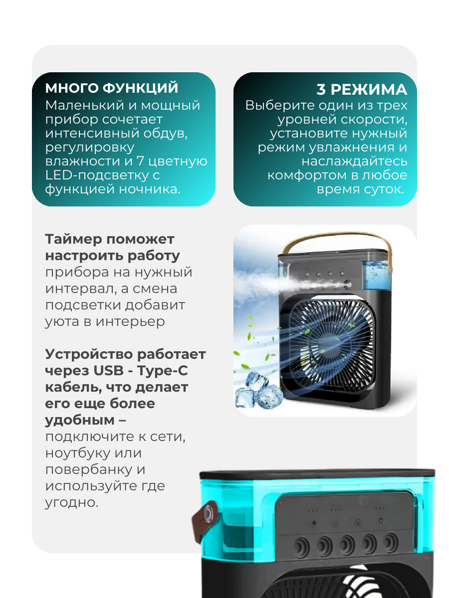 Настольный вентилятор\увлажнитель\кондиционер с подсветкой и 3 режимами бесшумный интересное:
