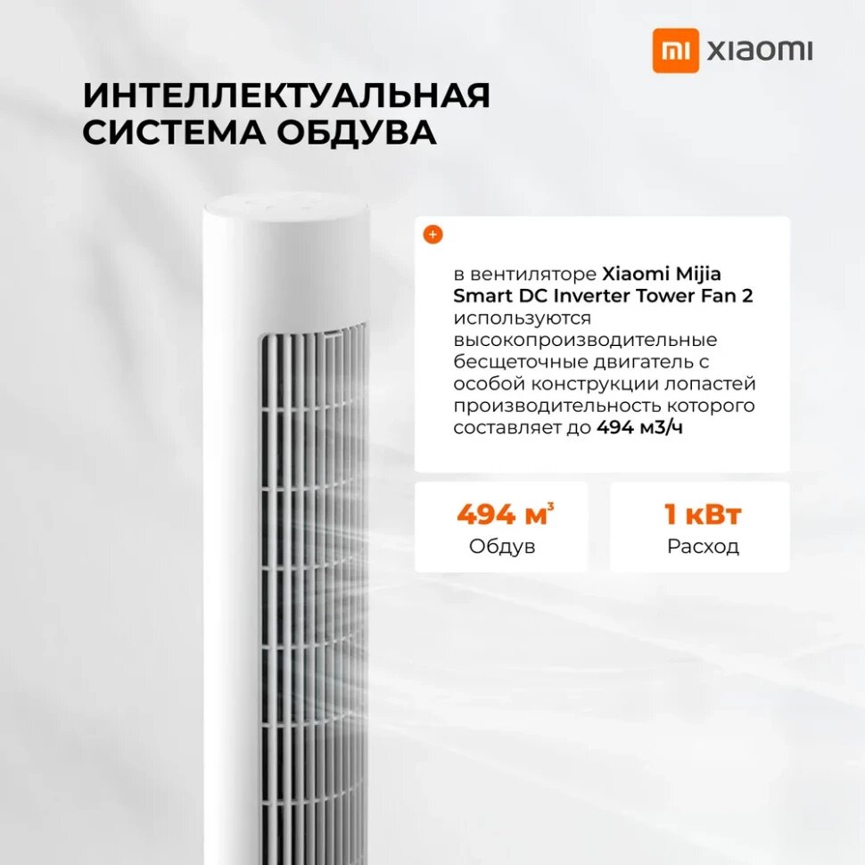 Умный вентилятор Mijia DC Inverter Tower Fan 2 BPTS02DM CN интересное: