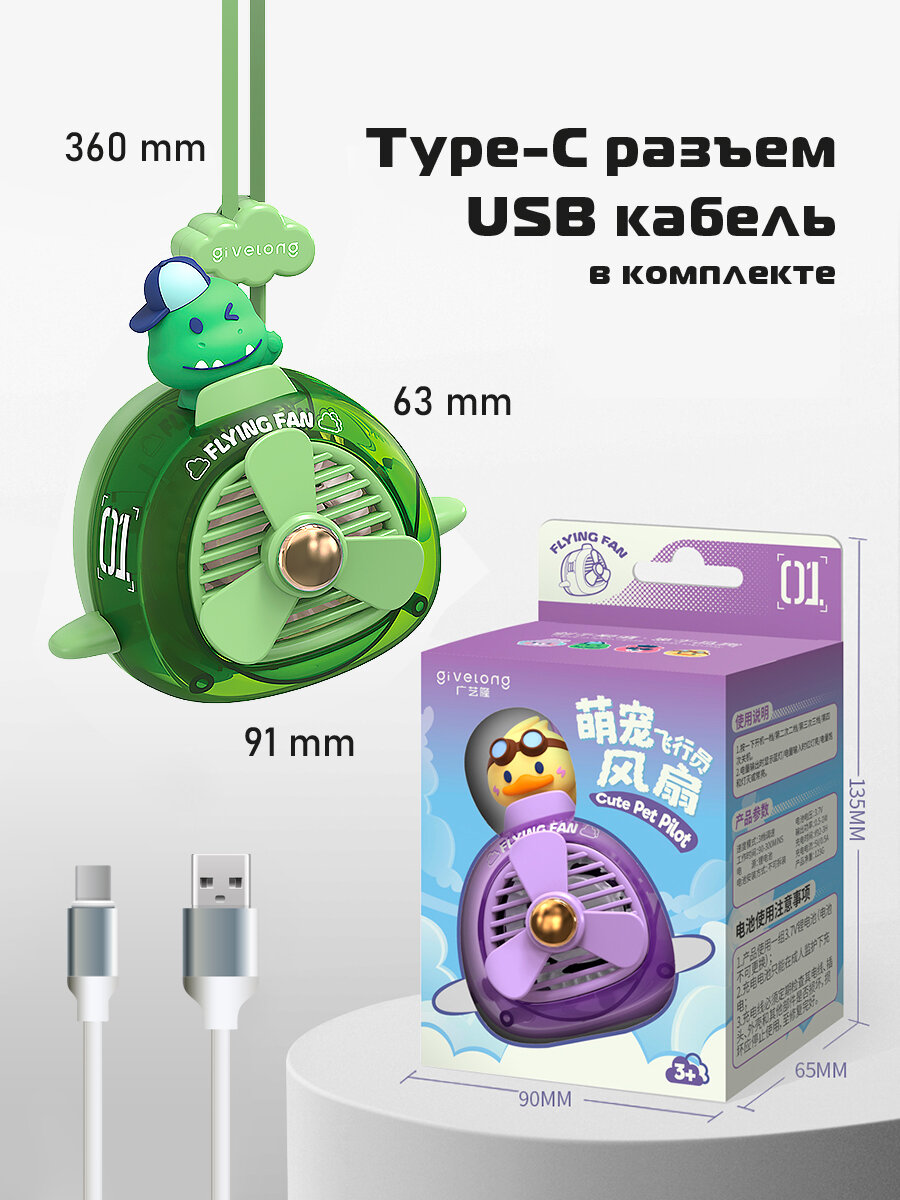 Портативный вентилятор на шею зеленый динозавр интересное:
