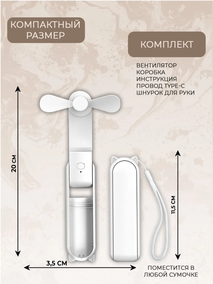 Мини вентилятор, с функцией PowerBank, USB, 3 скорости, белый интересное: