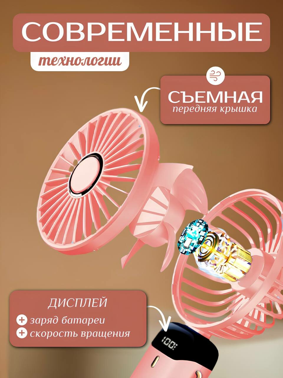 Портативный ручной вентилятор, 2 режима работы, встроенный аккумулятор, подставка для телефона розовый интересное: