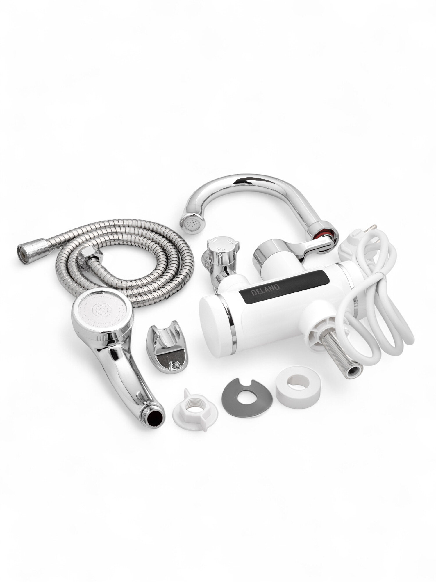 Водонагреватель проточный , кран электрический с подогревом, с лейкой и с поворотным гусаком , белый с черными вставками интересное:
