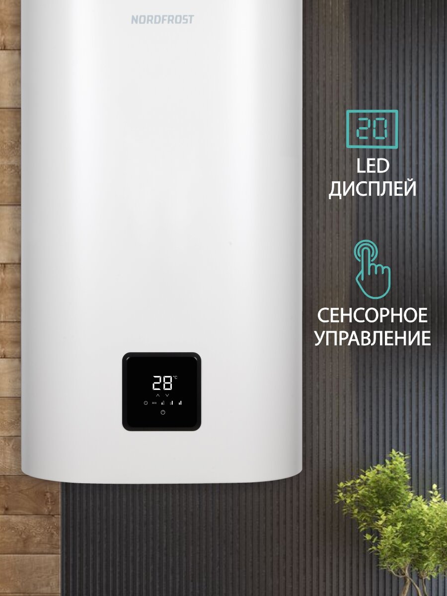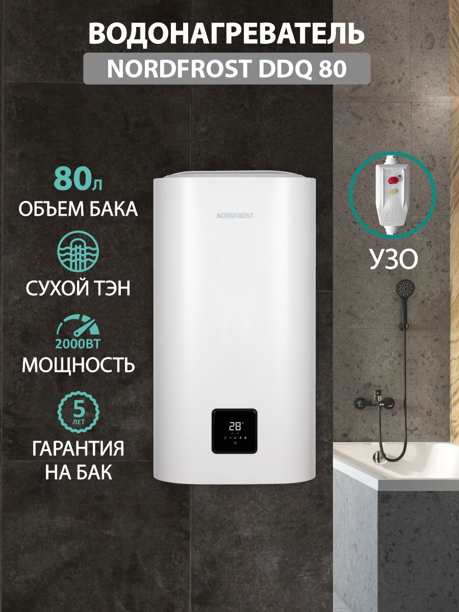Купить Электрический водонагреватель NORDFROST DDQ 80, сухой ТЭН, 80 л, 2000 Вт, электронное управление, LED-дисплей, белый