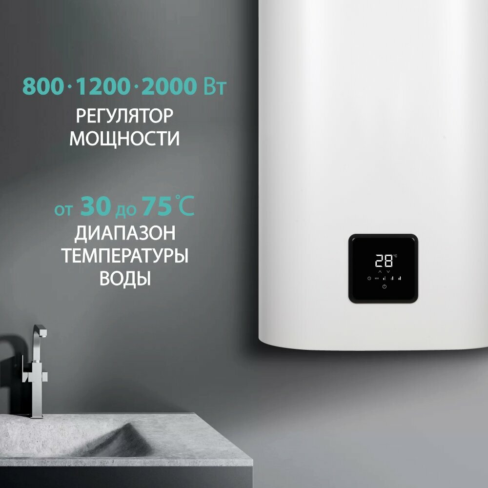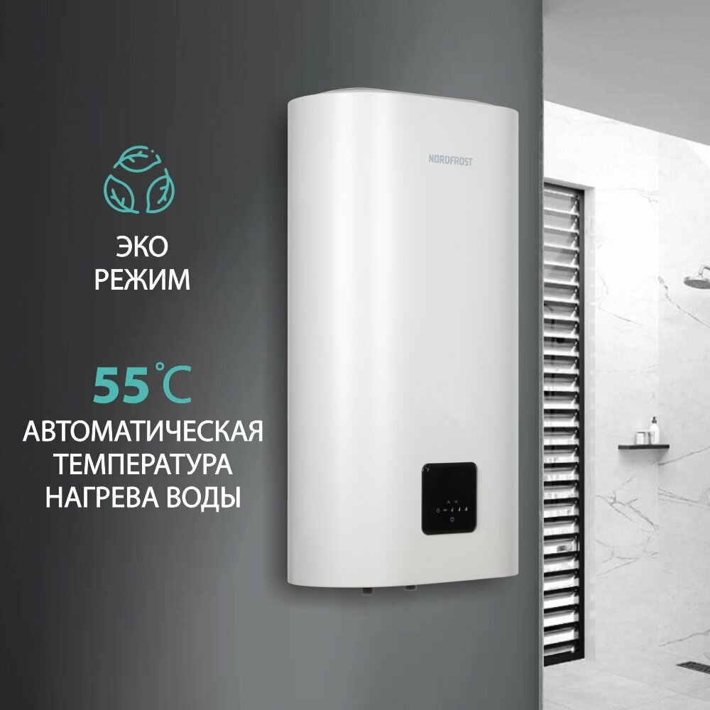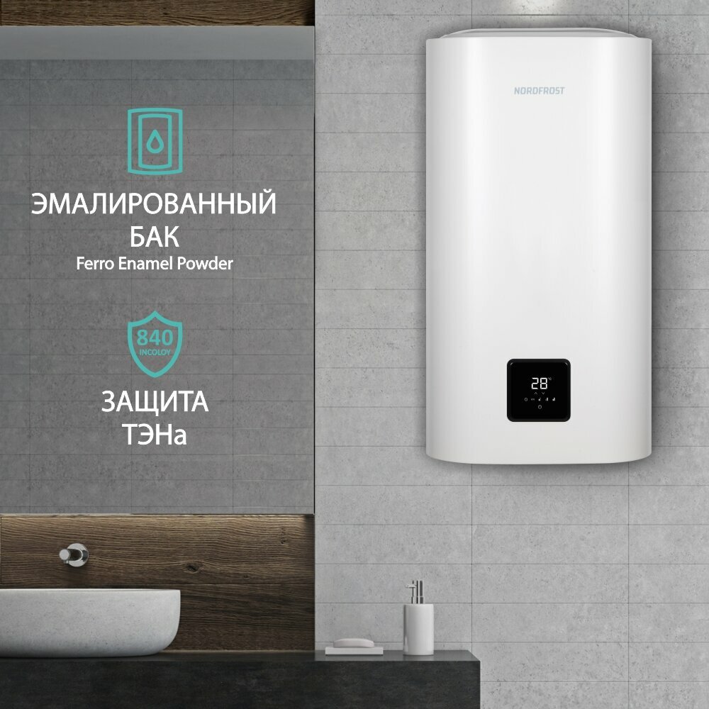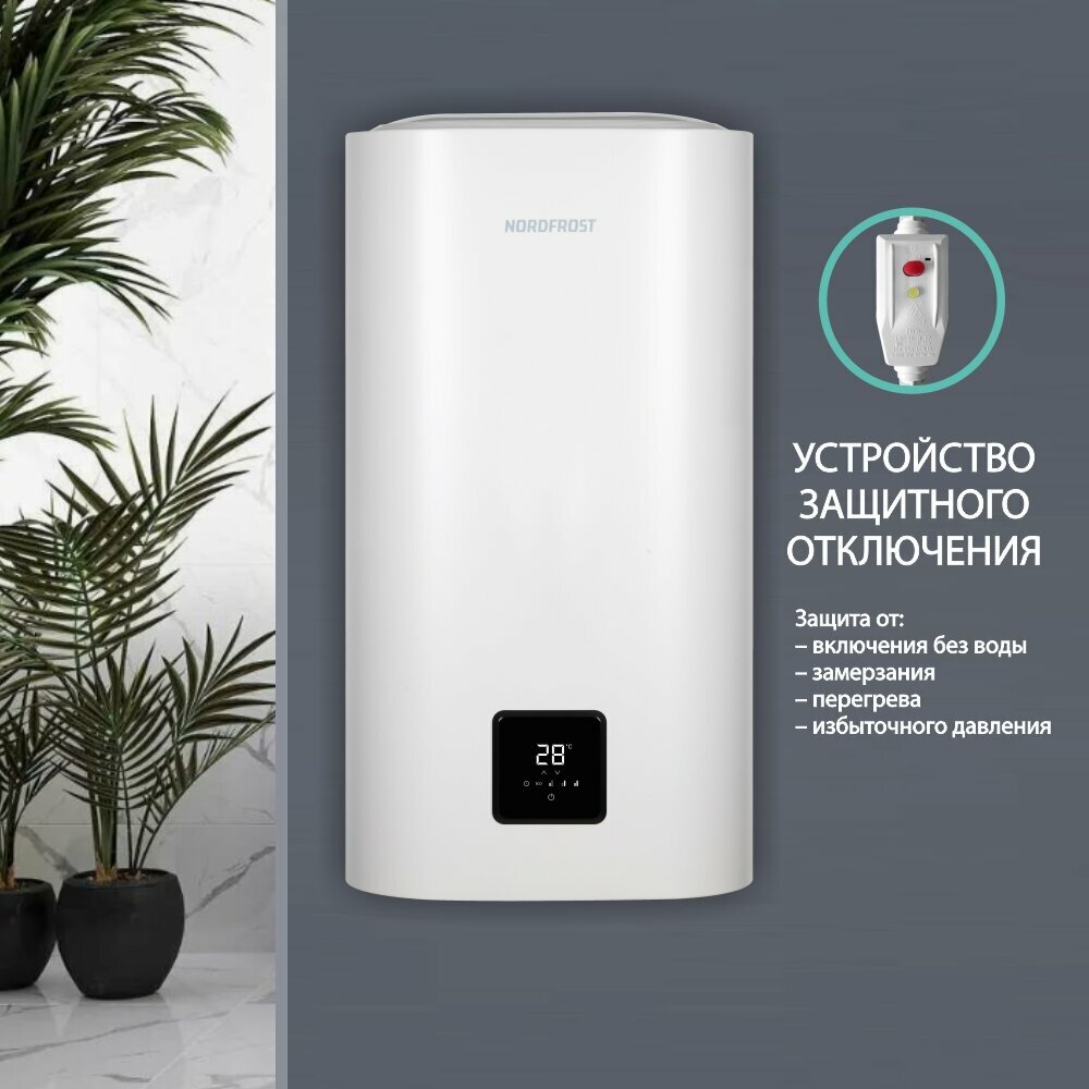 Электрический водонагреватель NORDFROST DDQ 80, сухой ТЭН, 80 л, 2000 Вт, электронное управление, LED-дисплей, белый
