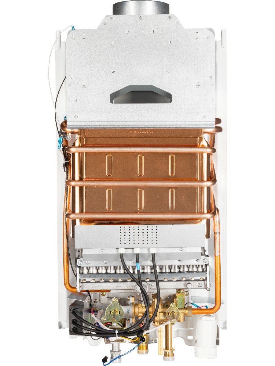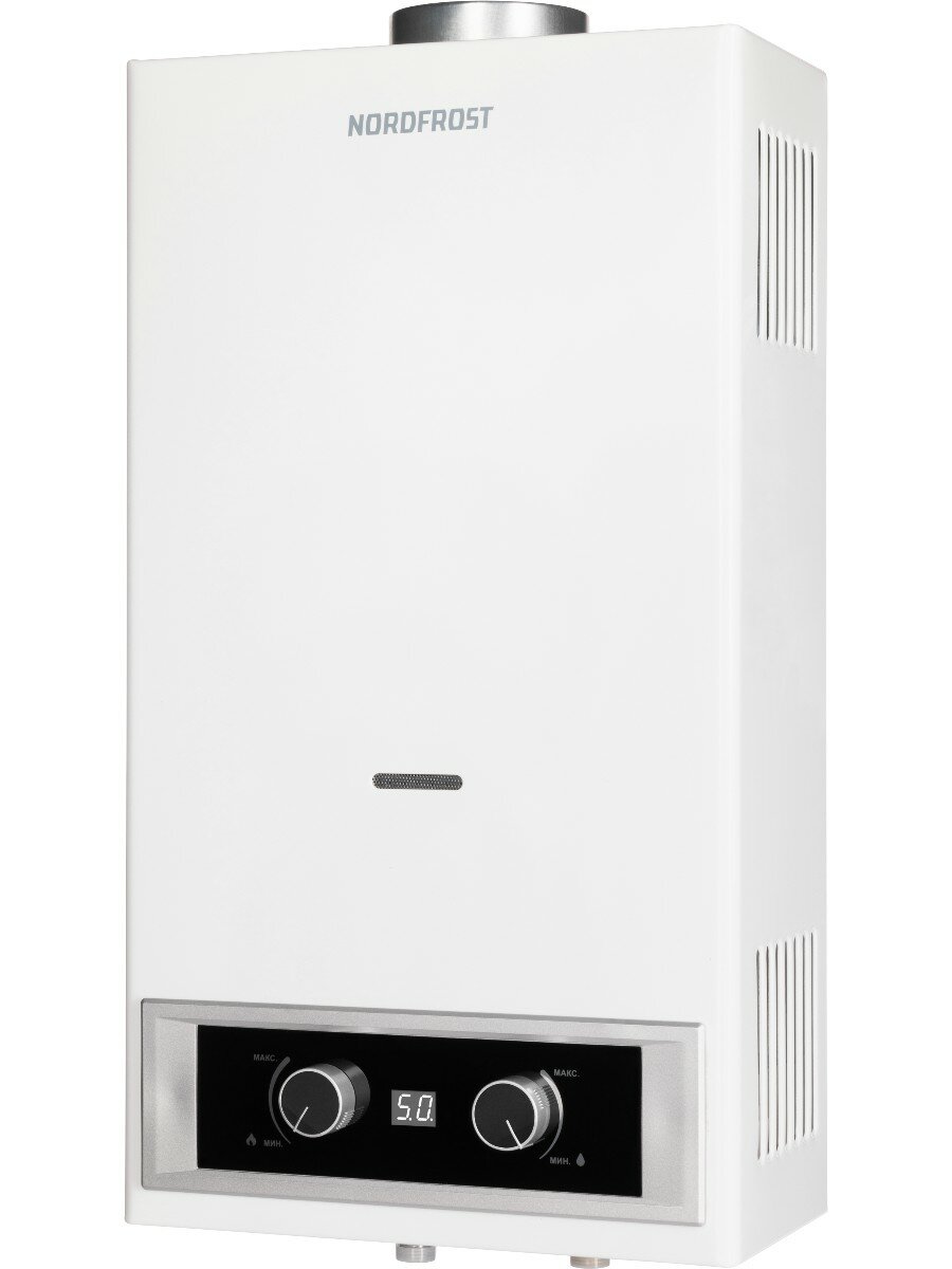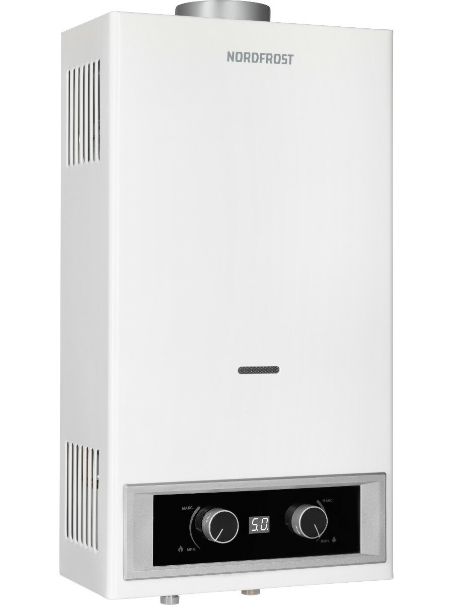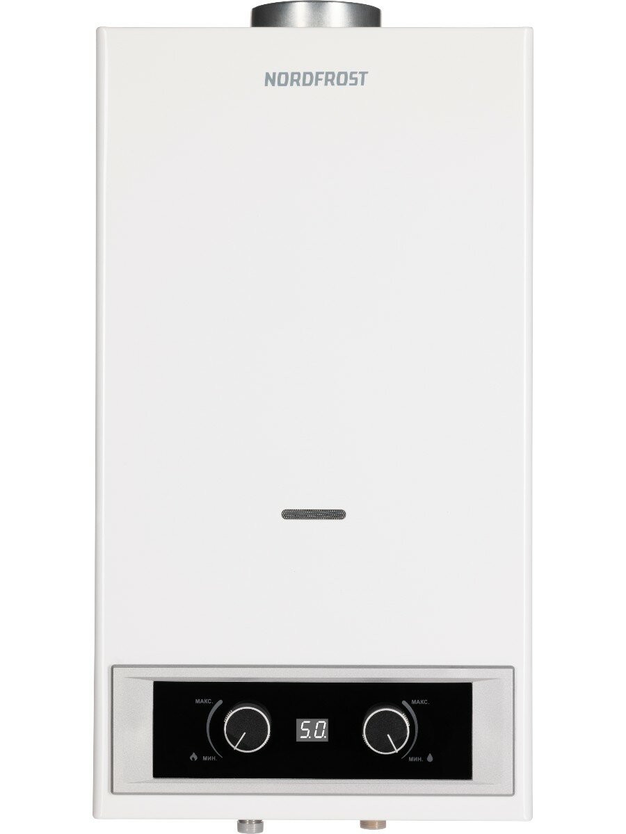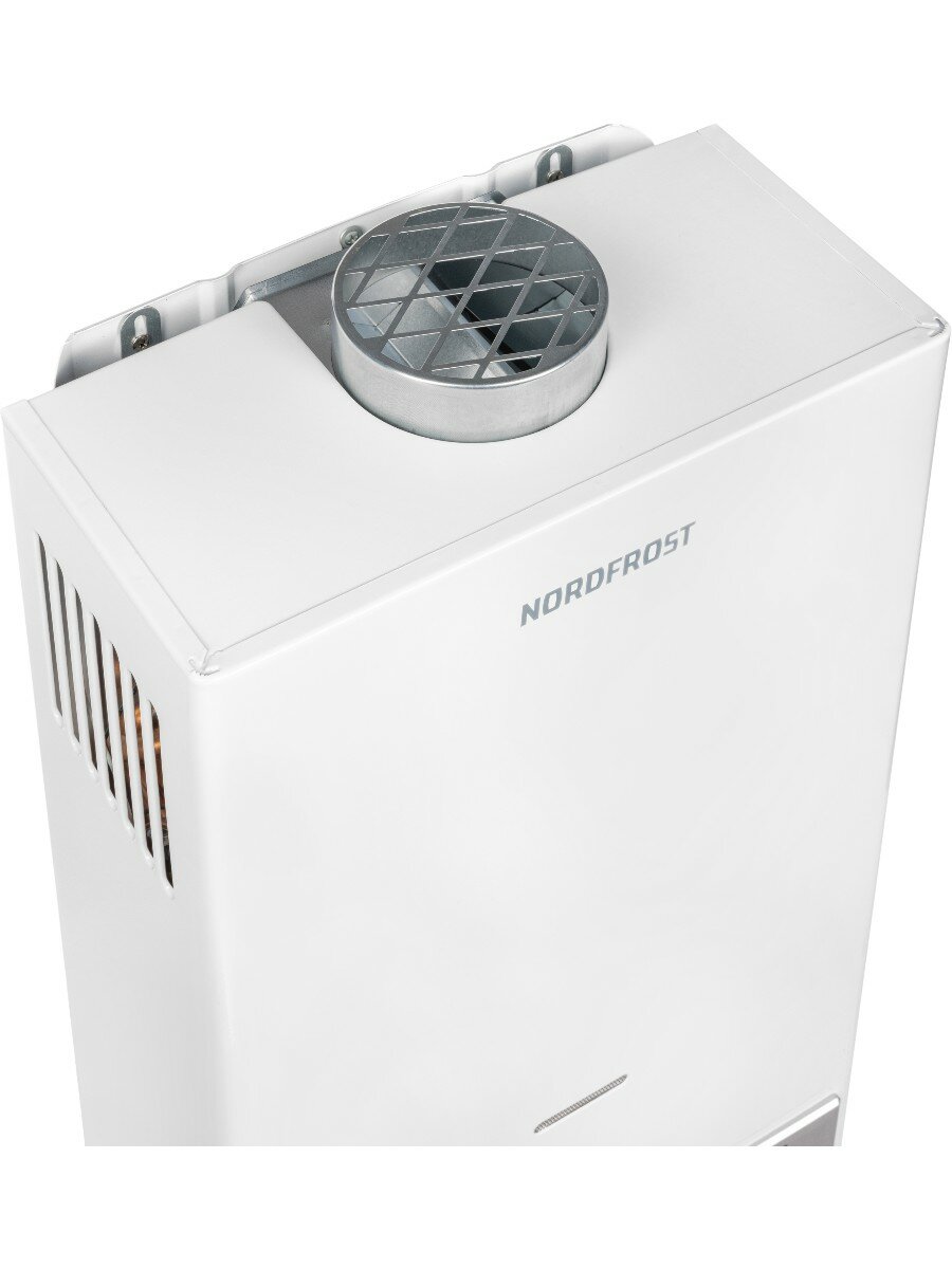 Купить Водонагреватель газовый проточный NORDFROST GF 120 W с авторозжигом/колонка на 12 л/24 кВт, дымоход 110 мм, белый