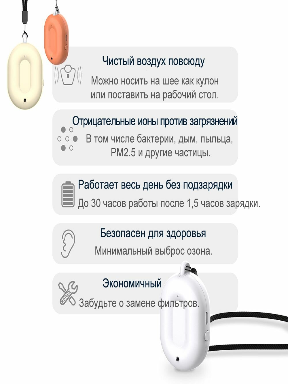 Персональный портативный ионизатор воздуха на шею мини очиститель с генератором отрицательных ионов интересное: