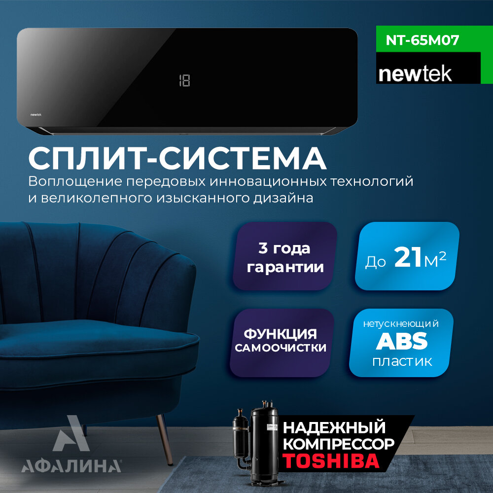 Сплит-система, кондиционер настенный NewTek NT-65M, черный, 7BTU, площадь до 21м², 4 режима работы интересное: