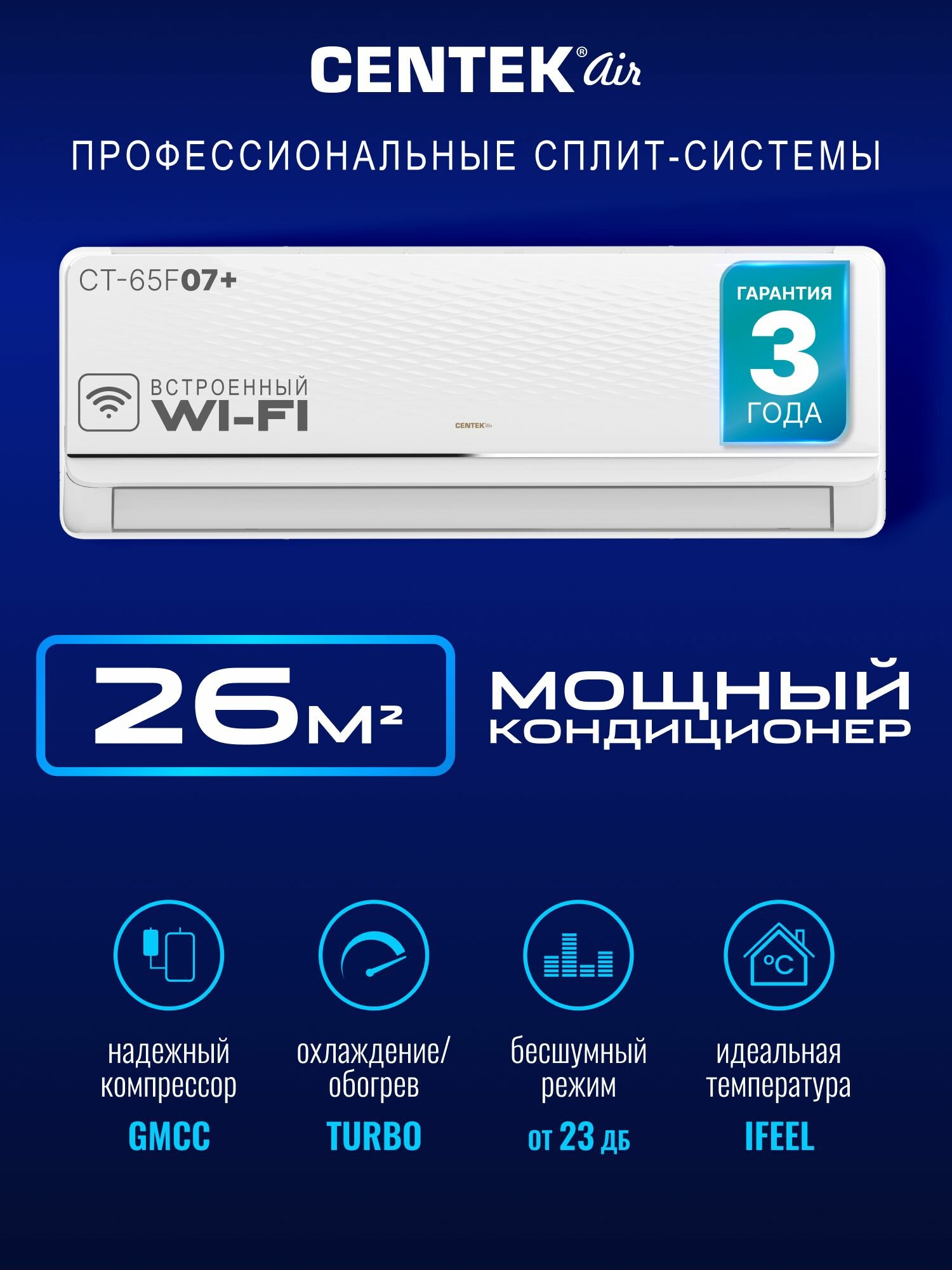 Кондиционер CENTEK CT-65F24 Wi-Fi (70 кв. м) A класс Компрессор Toshiba LED дисплей 4D i FEEL Wi Fi (встроенный модуль)