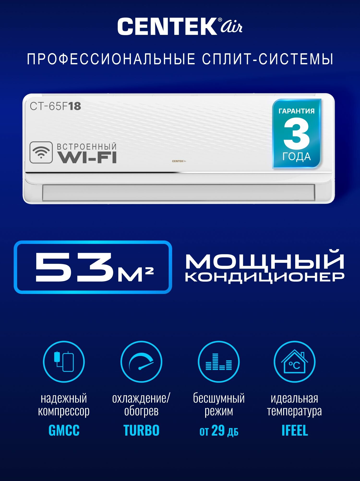 Купить Кондиционер CENTEK CT-65F18 Wi-Fi (50 кв. м) A класс Компрессор Toshiba LED дисплей 4D i FEEL Wi Fi (встроенный модуль)